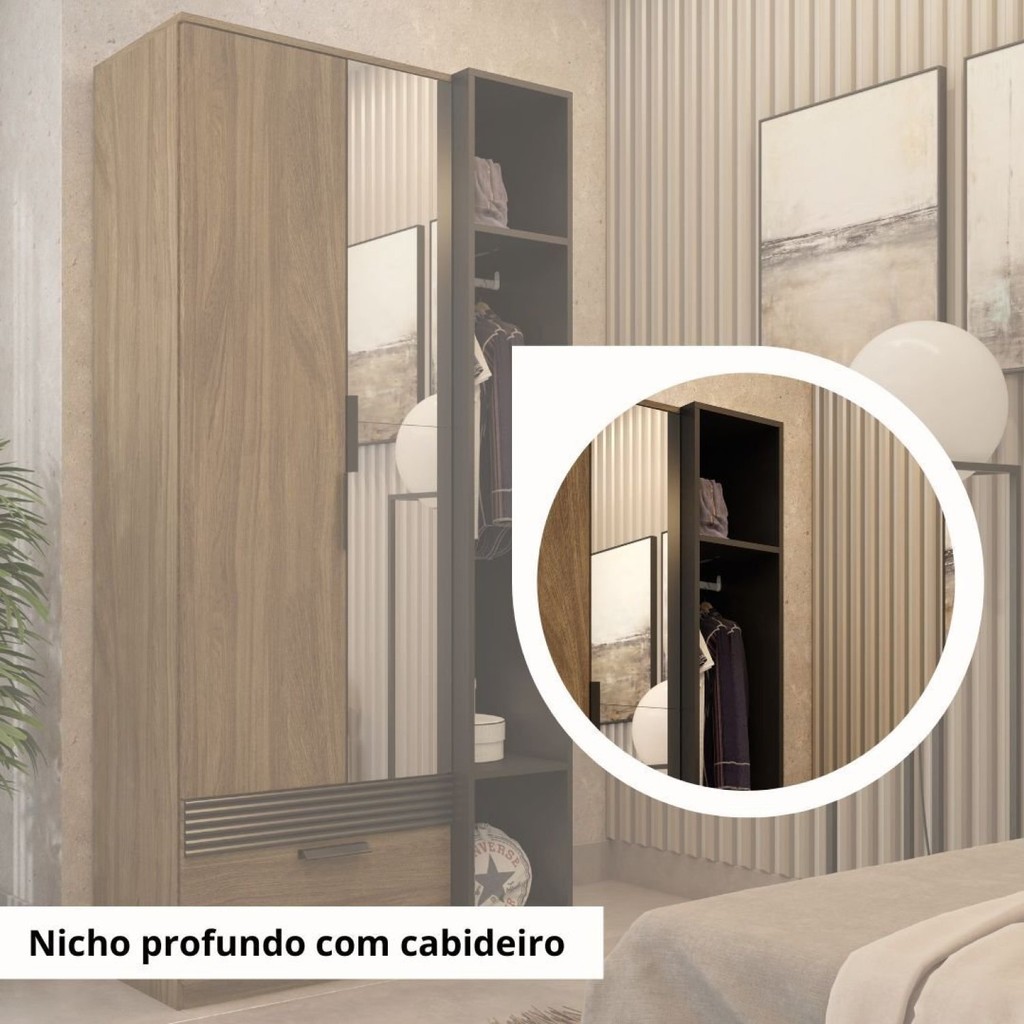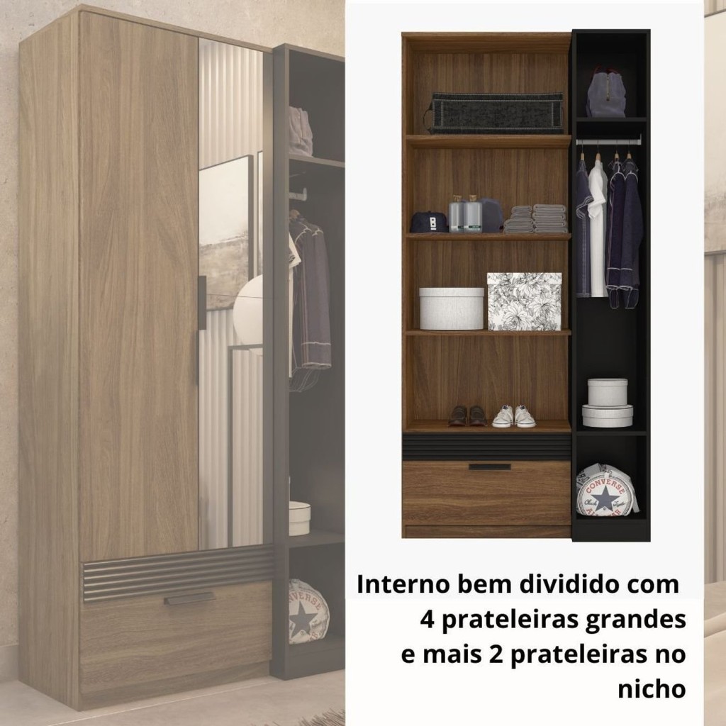 Guarda Roupa Solteiro com Espelho 2 Portas 1 Gaveta Capri Nogueira/Preto