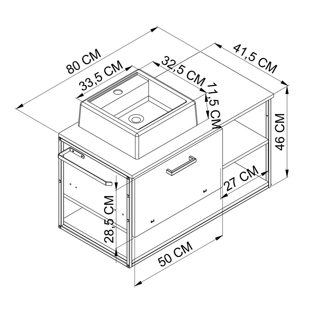Gabinete Suspenso para Banheiro 80cm com Cuba Preto/Mel
