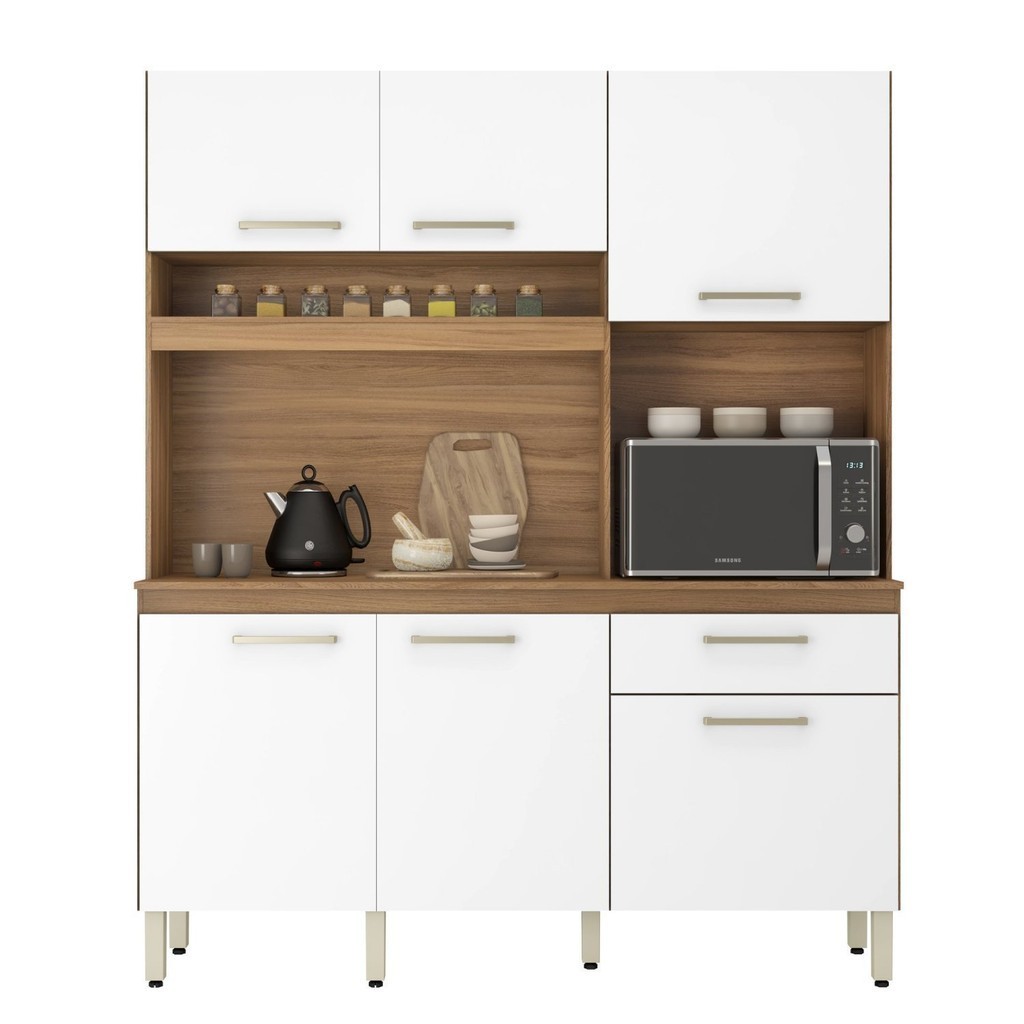 Cozinha Compacta 6 Portas 1 Gaveta Alamo Amêndola/Branco