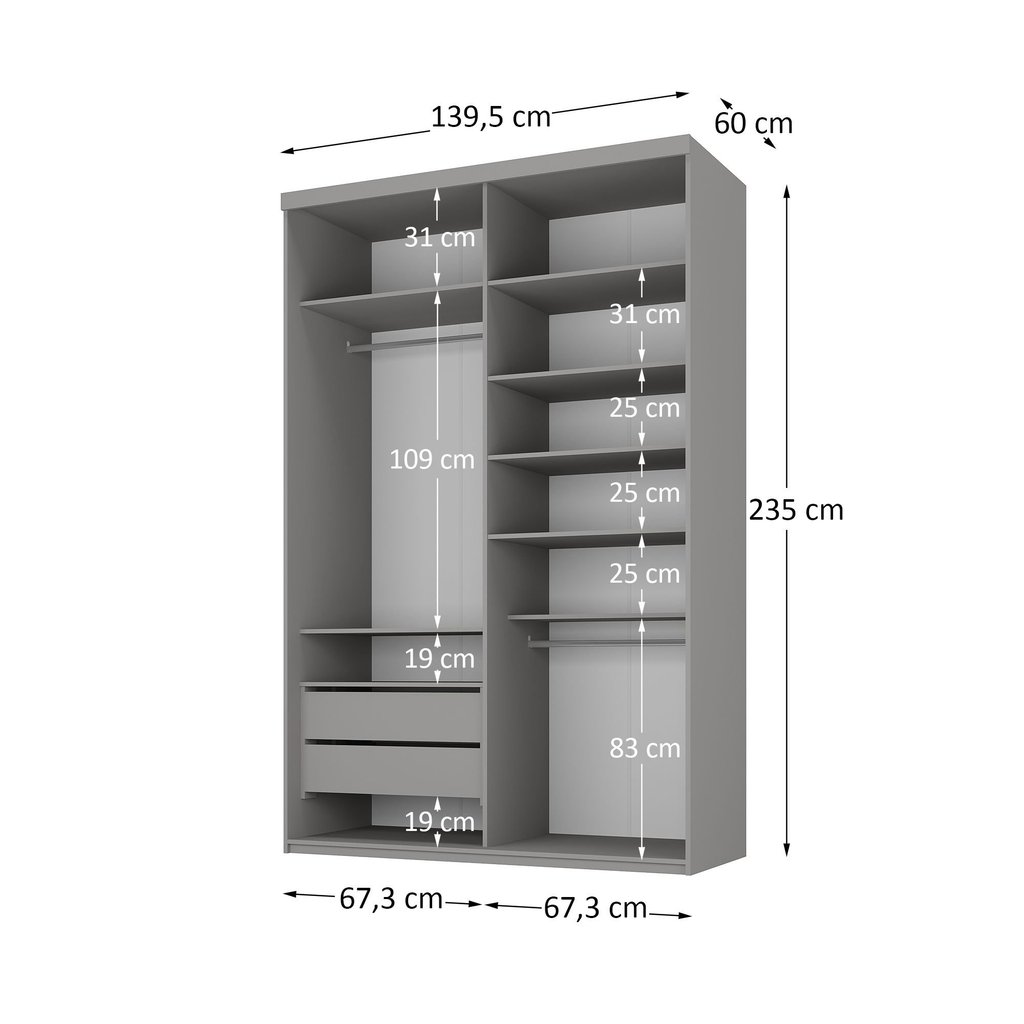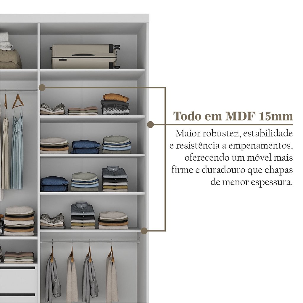 Guarda-roupa Solteiro 100% Mdf Bp com 2 Portas e 1 Espelho Geneve Urbi