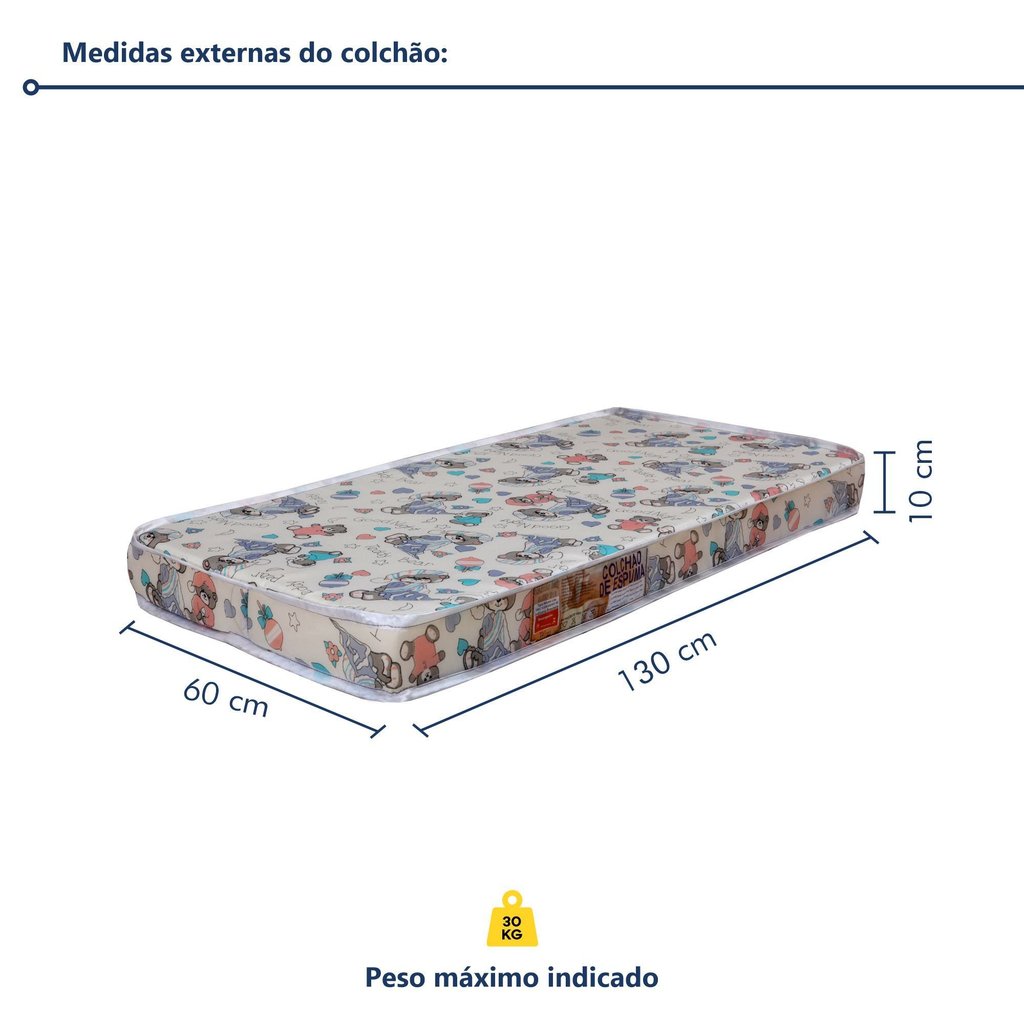 Berço Mini Cama 100% MDF com Colchão Life Branco/Madeirado Ypê