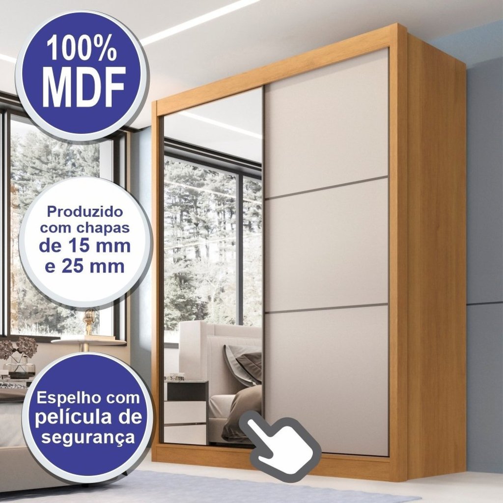 Guarda Roupa Casal 2 Portas 3 Gavetas com Espelho 100% Mdf Grécia Cinamomo/Off White