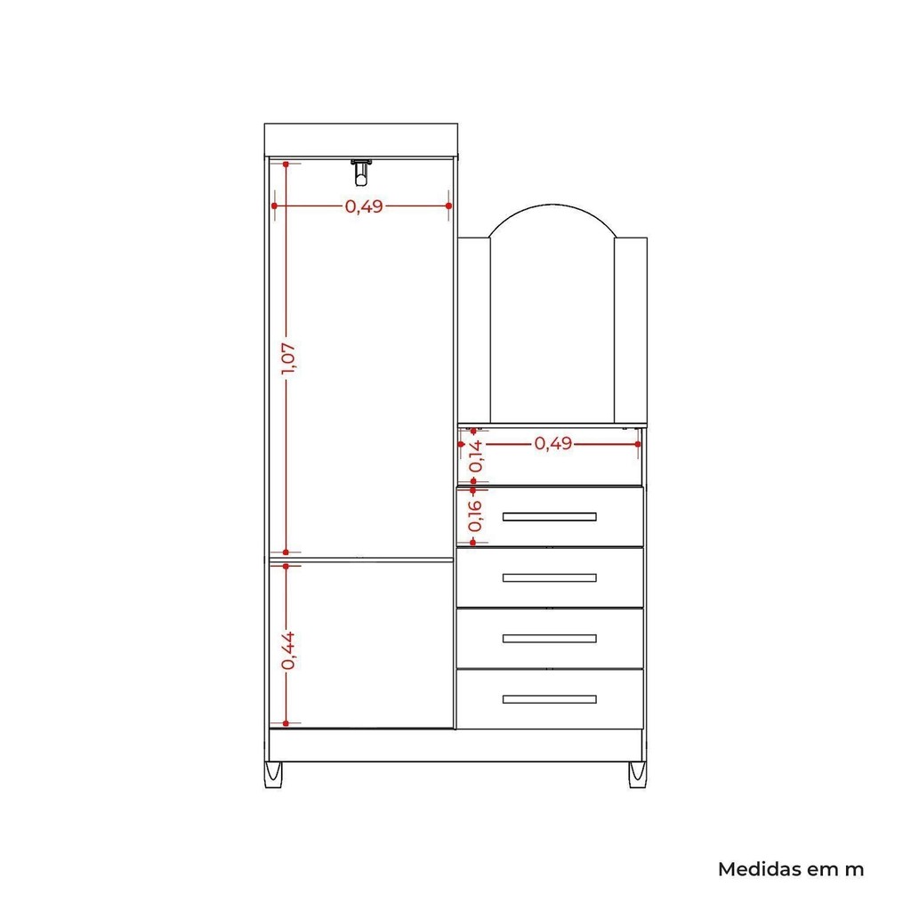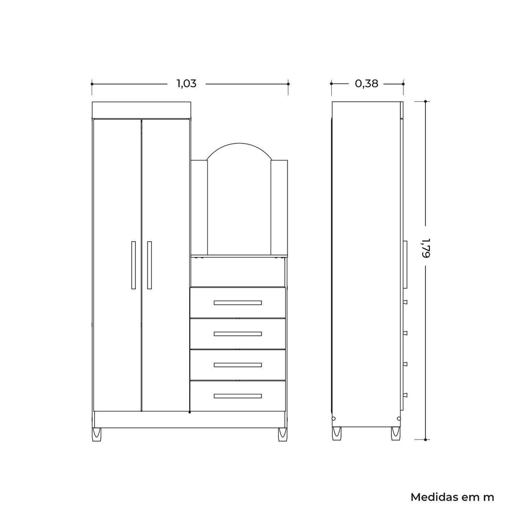 Guarda-roupa Cômoda 2 Portas e 4 Gavetas com Espelho New Capri