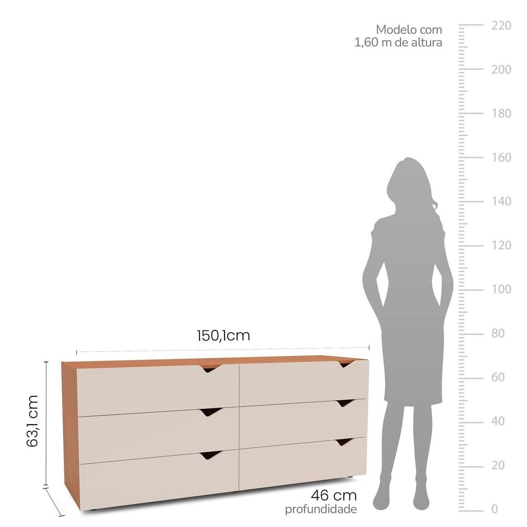 Cômoda para Quarto 6 Gavetas Porto Freijó/Creme