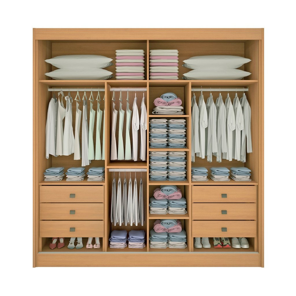 Guarda-roupa Casal 2 Portas 6 Gavetas 100% Mdf Hawai Ripado Cinamomo/Off White