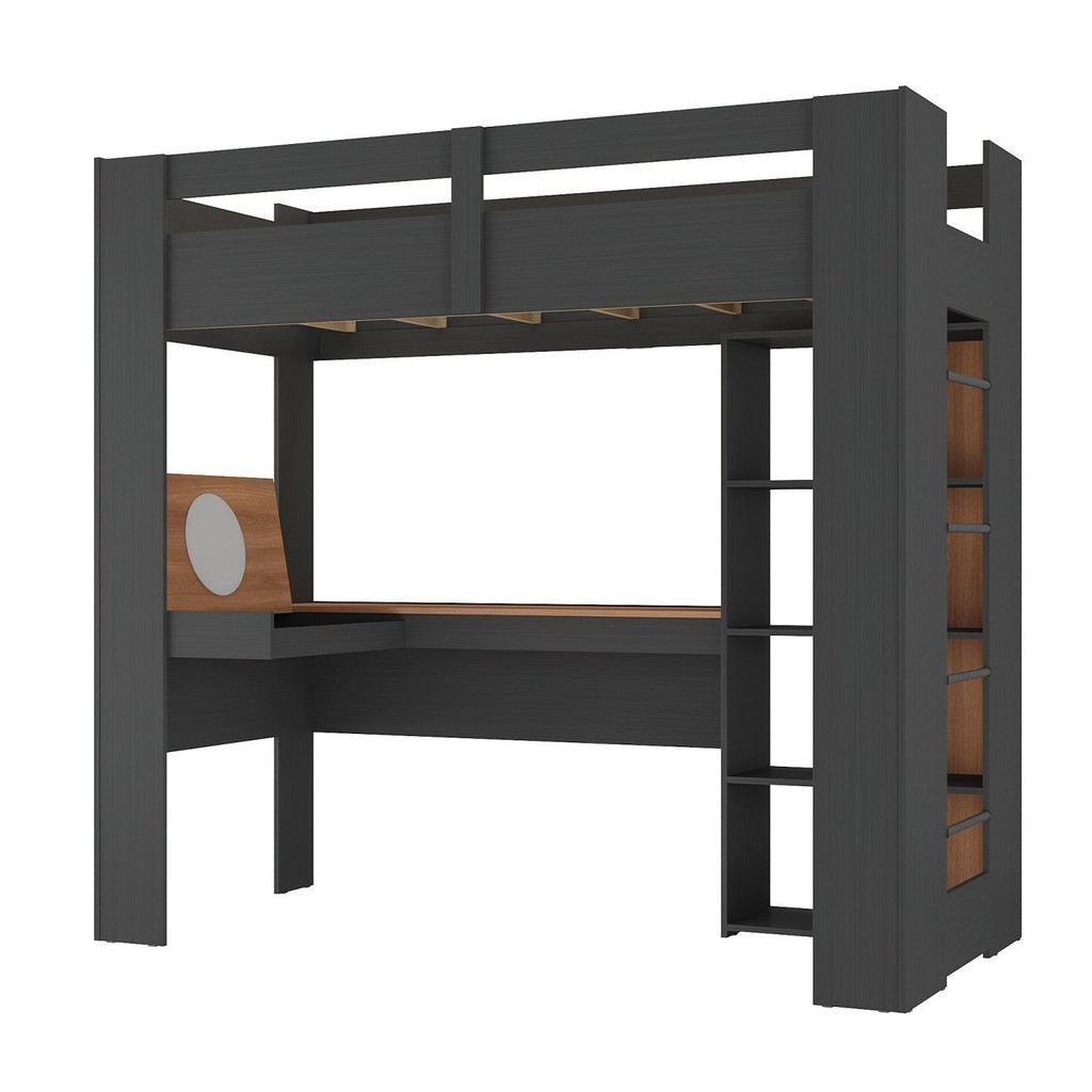 Cama Alta Infantil/juvenil Multifuncional com Escrivaninha Penteadeira Agatha Grafite/Nogal