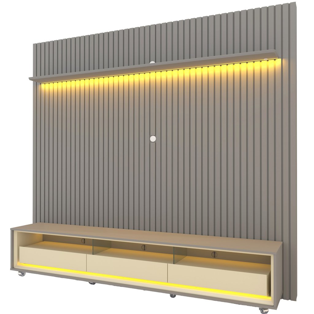 Rack com Painel Ripado para Tv até 90 Polegadas Led 3 Gavetas com Rodízios 230cm Naturale 100% MDF Cinza/Off White