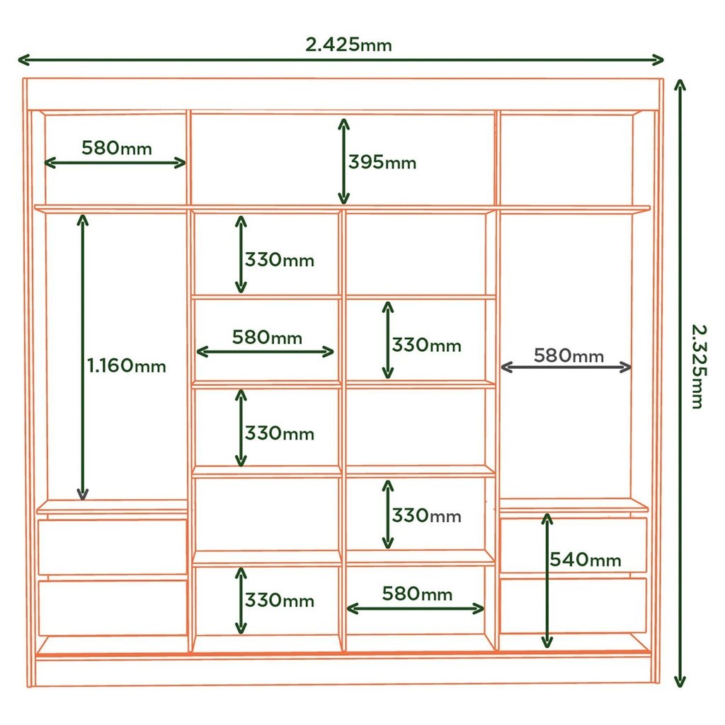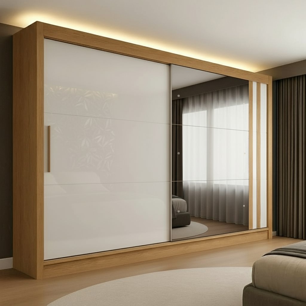 Guarda-roupa Casal 2 Portas de Correr 4 Gavetas com Espelho Toquio Espresso Móveis Freijó/Off White