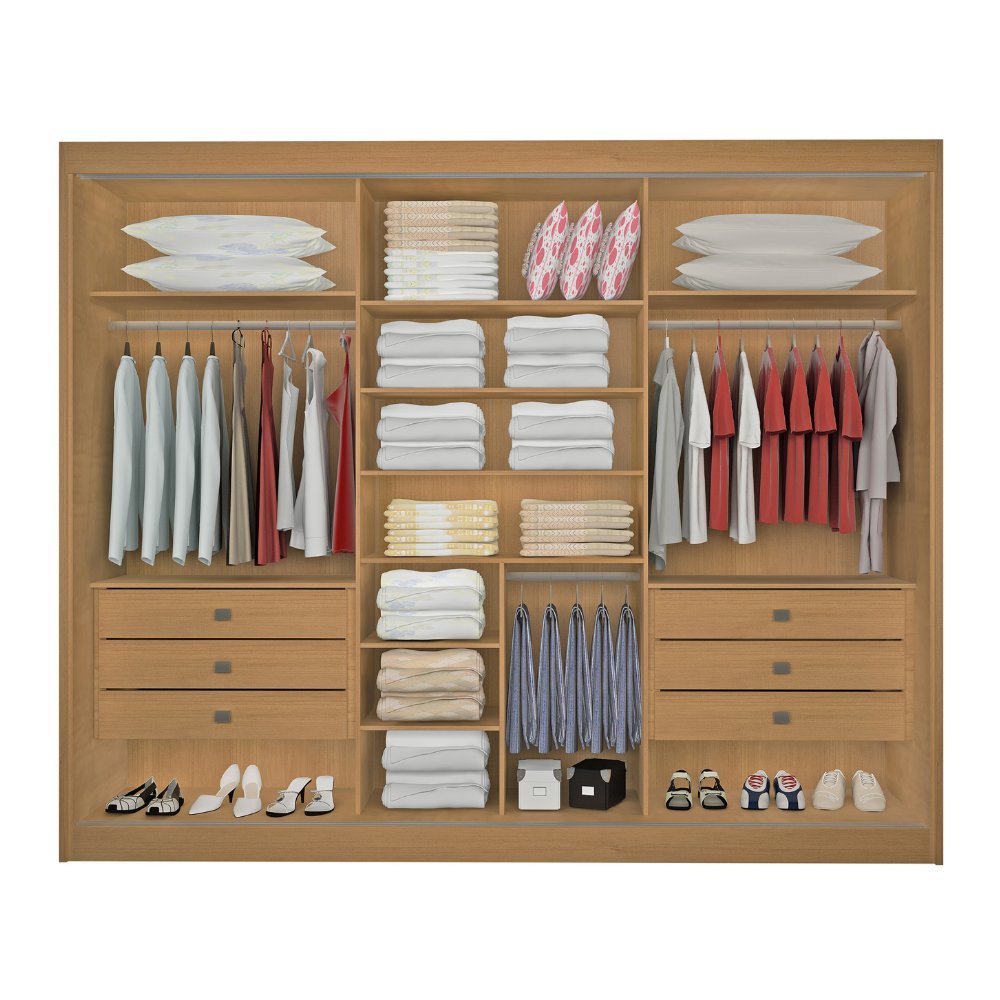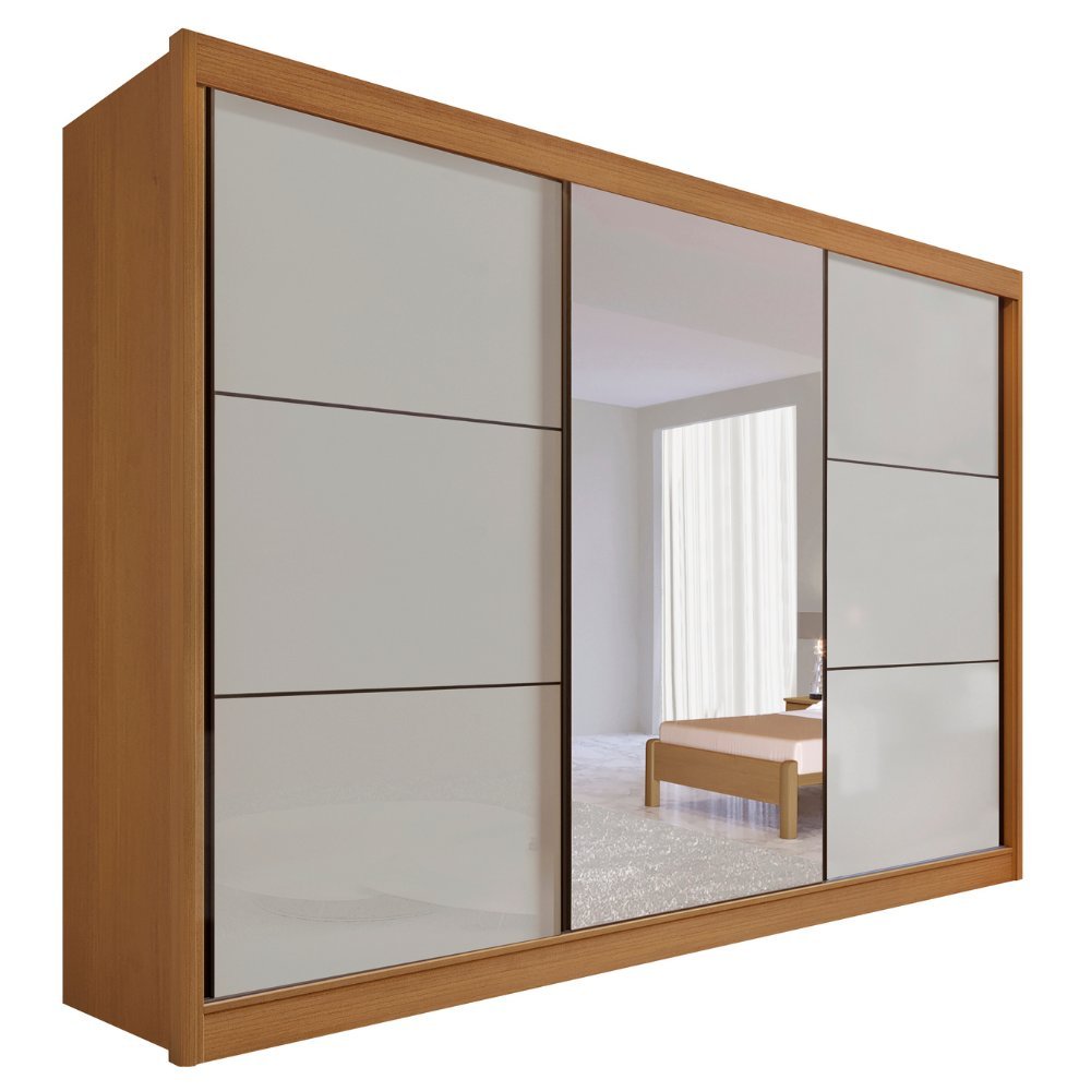 Guarda Roupa com Espelho Casal 3 Portas 6 Gavetas 100% Mdf Miami Cinamomo/Off White