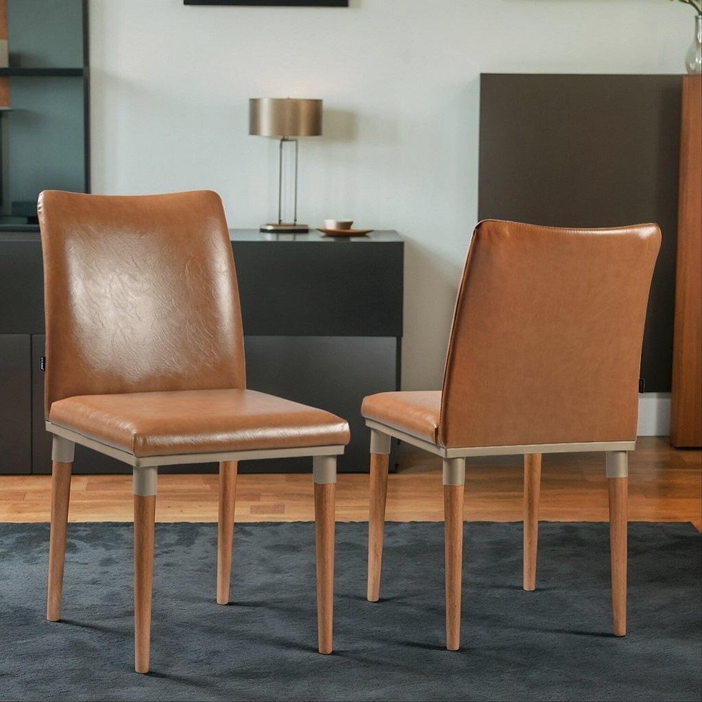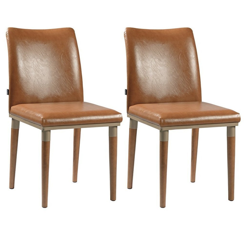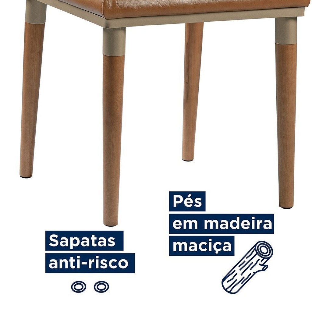 Kit 2 Cadeiras Couro Sintético e Pés em Madeira Maciça Isa Marrom/Champagne