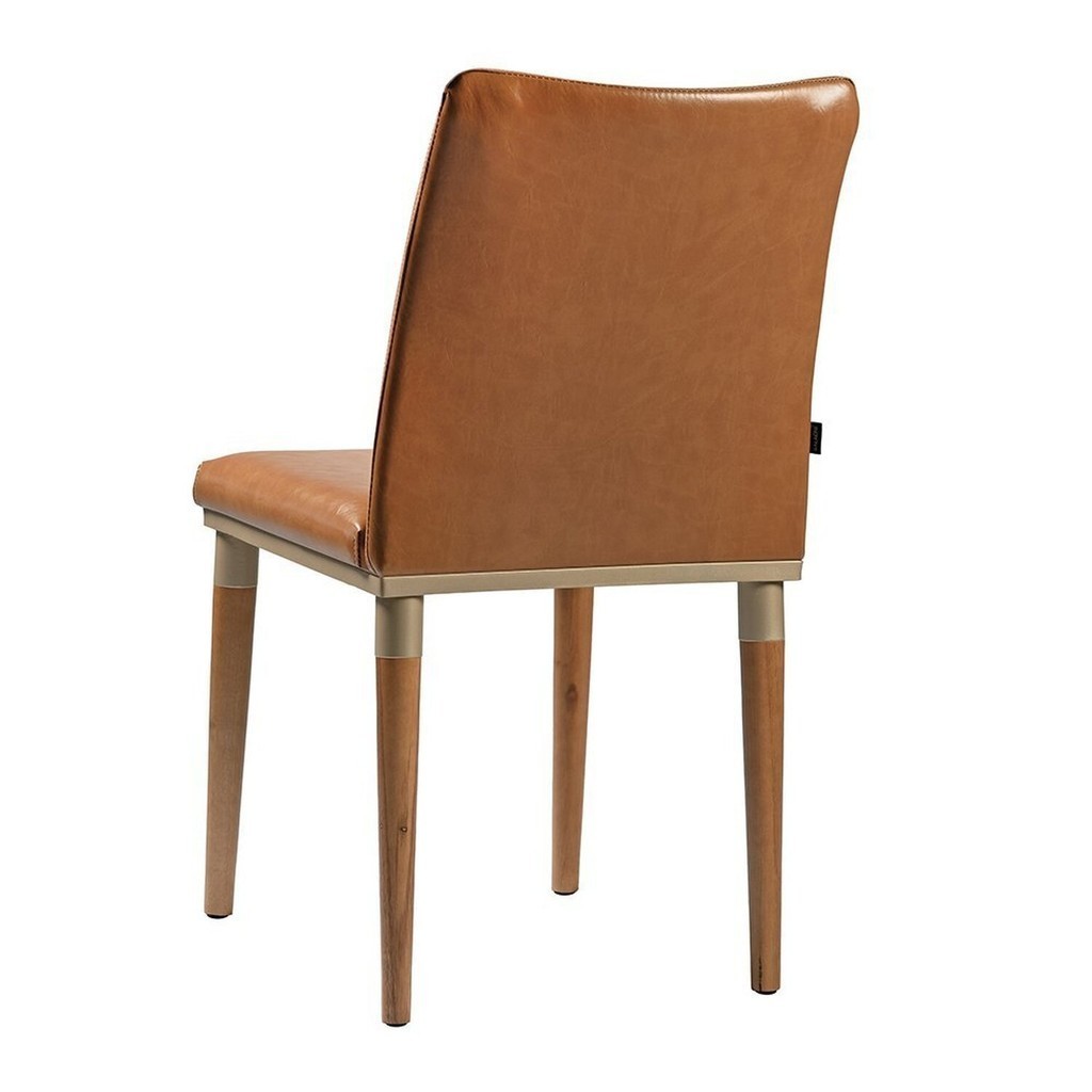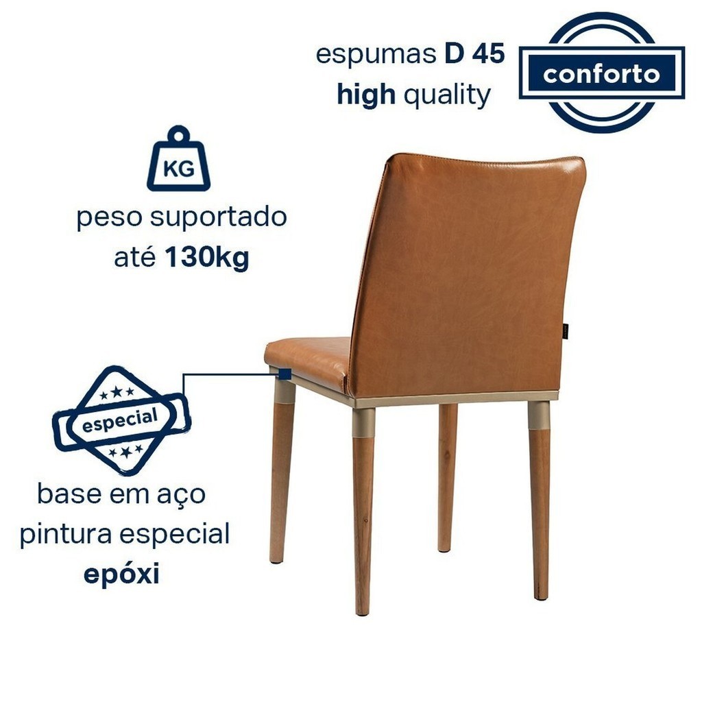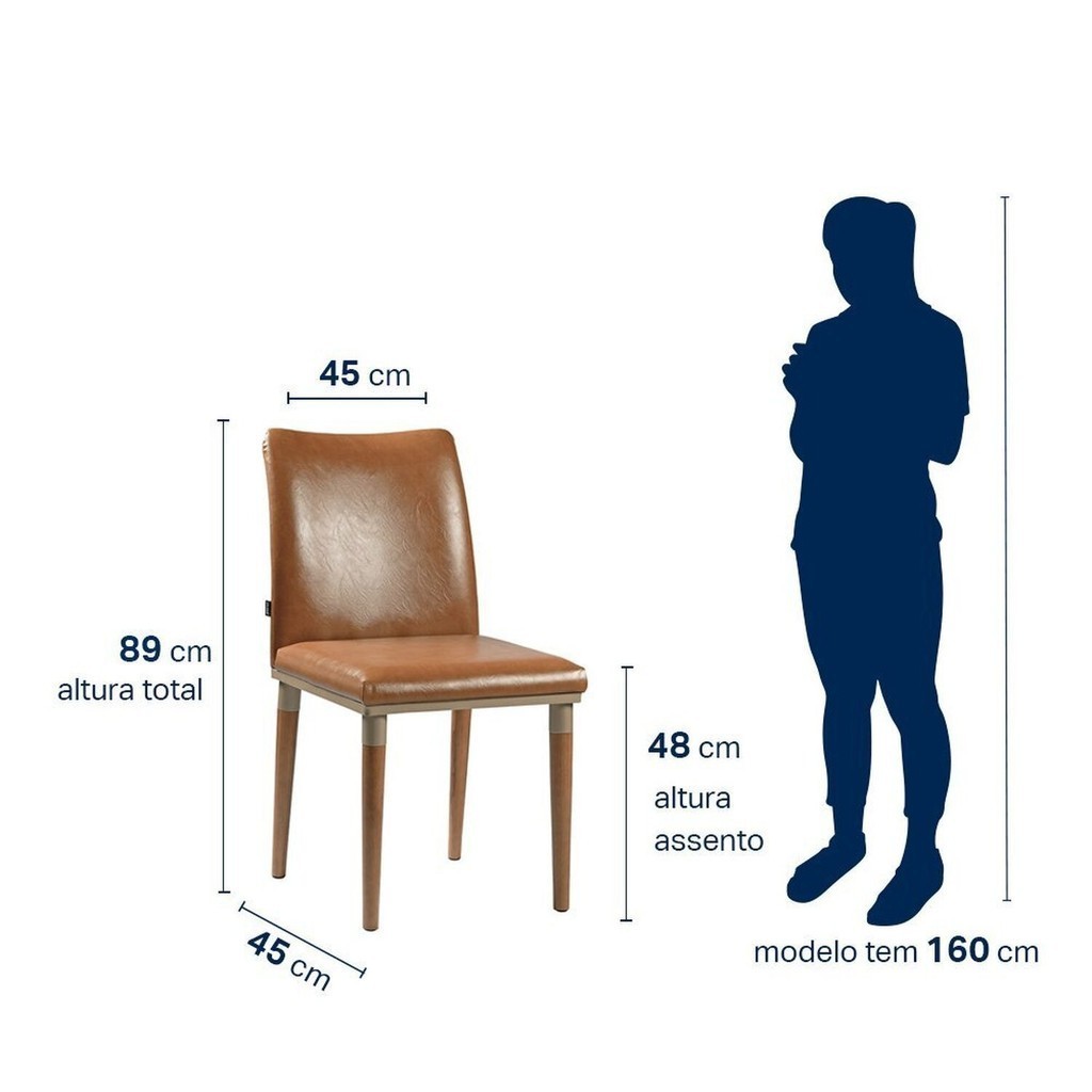 Kit 2 Cadeiras Couro Sintético e Pés em Madeira Maciça Isa Marrom/Champagne