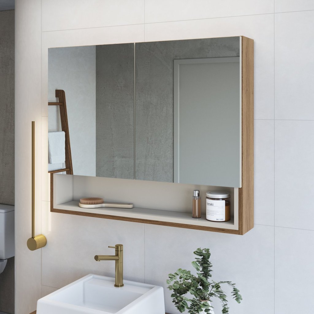 Armário Espelheira para Banheiro Helena com 2 Portas e 1 Nicho Mel/Arenas