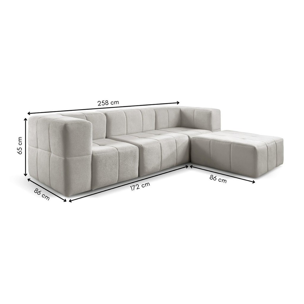 Sofá Modular 3 Lugares + Puff Bouclé Cinza