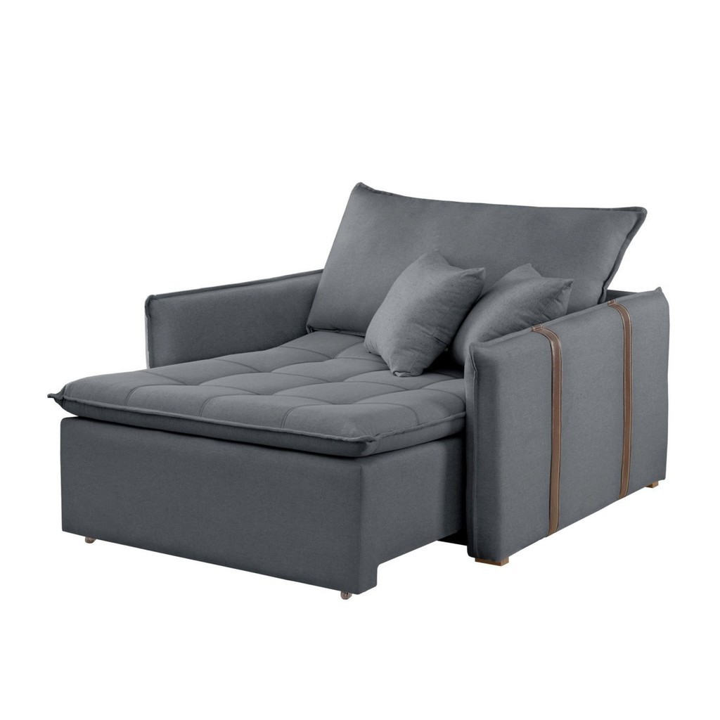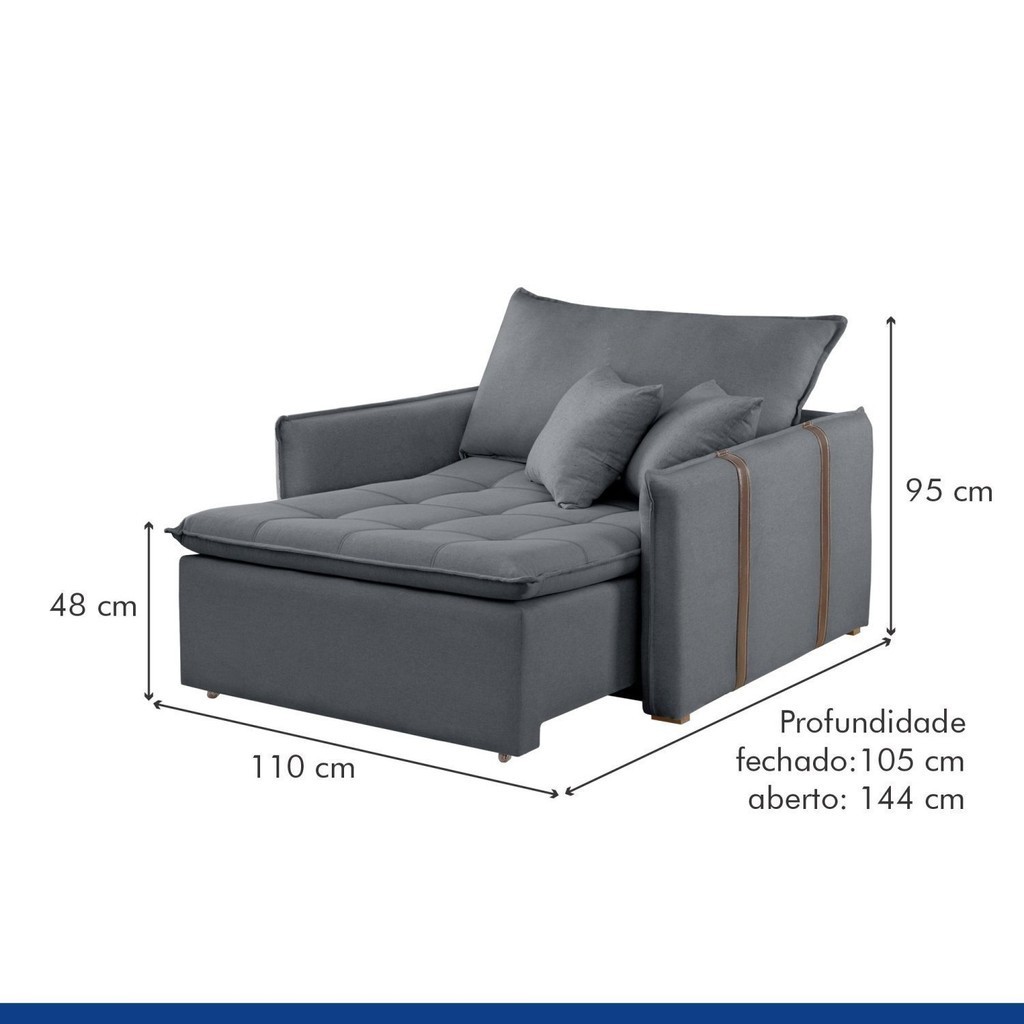 Poltrona Cama em Madeira Eucalipto 110 cm Detroid Yescasa Veludo Cinza