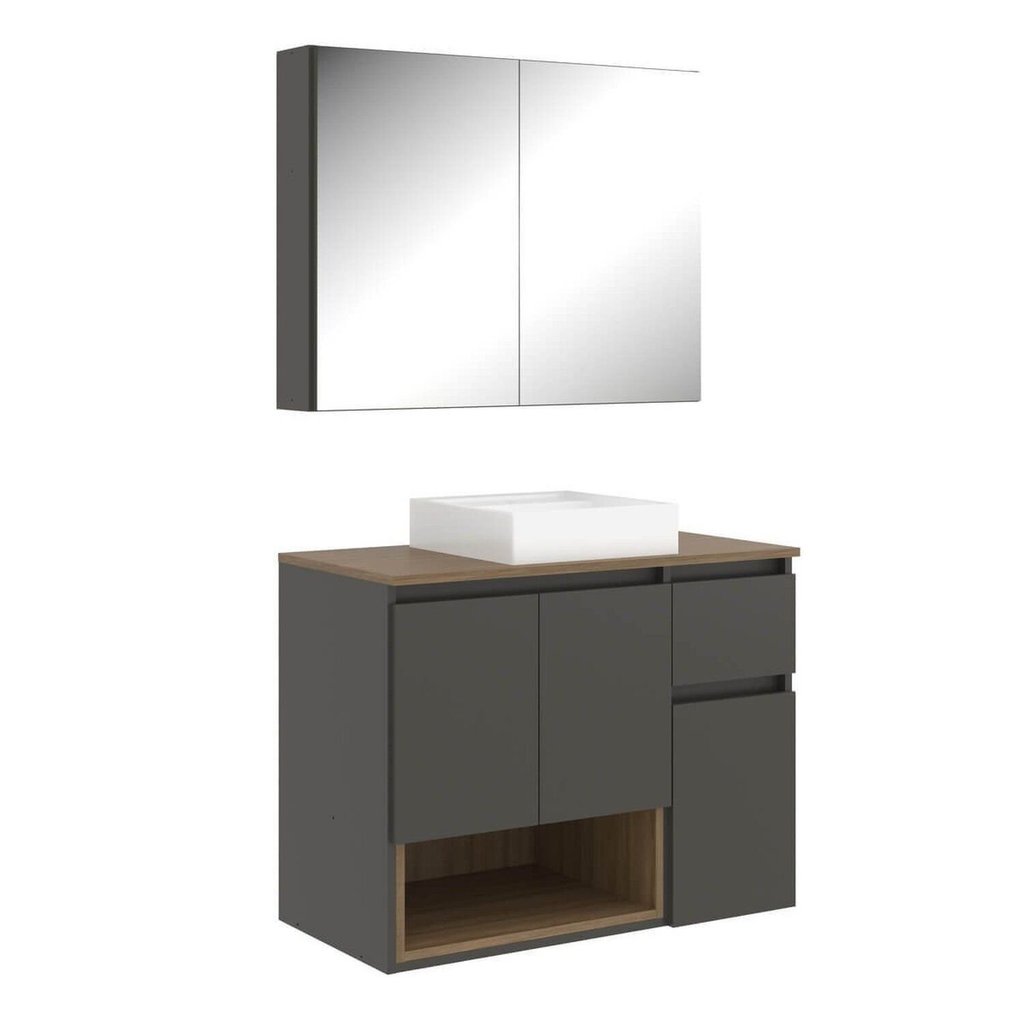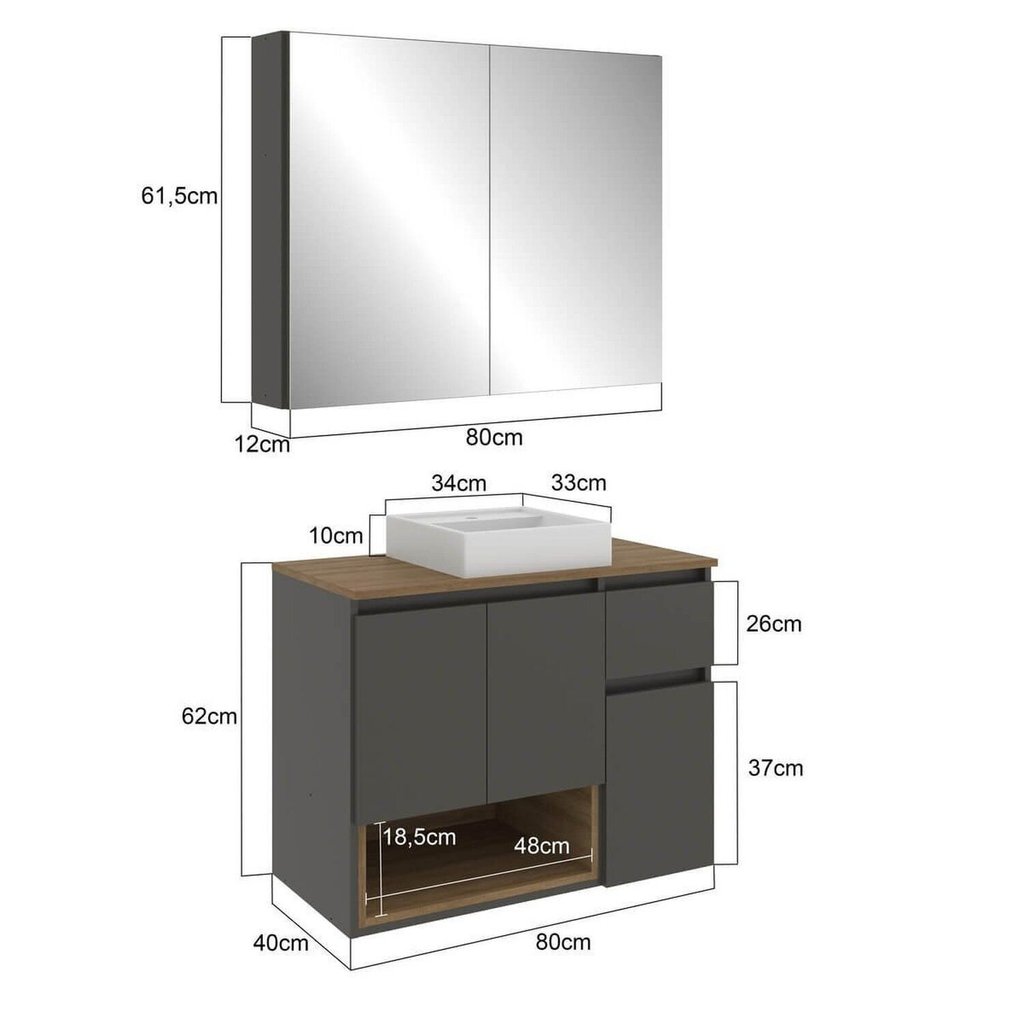 Conjunto de Móveis para Banheiro 80cm Aurora Mel/Grafite
