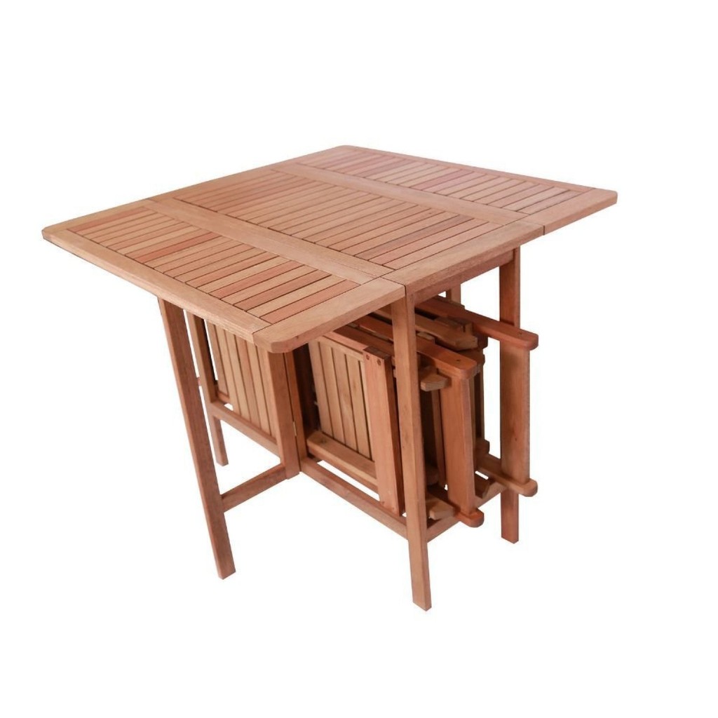 Conjunto Prático Dobrável Veneza com 4 Cadeiras Madeira Maciça