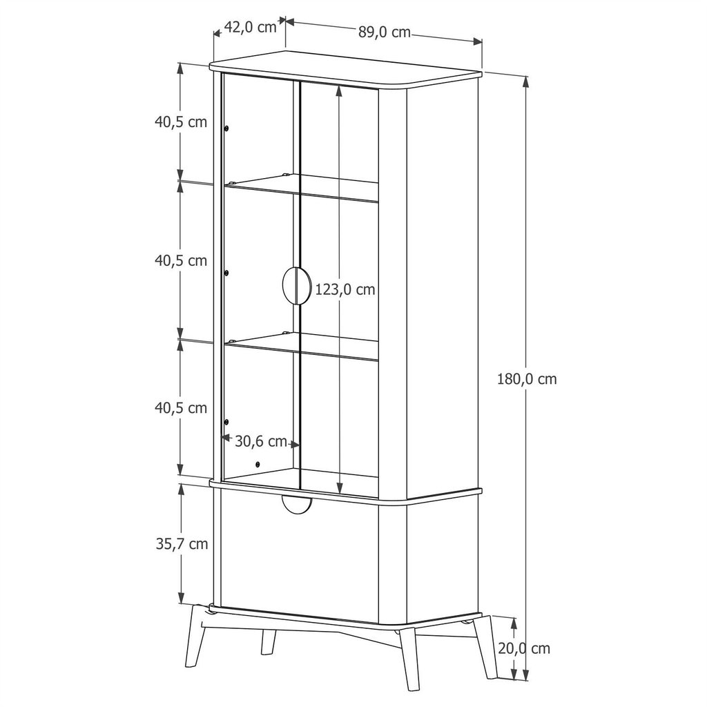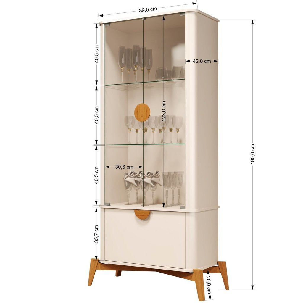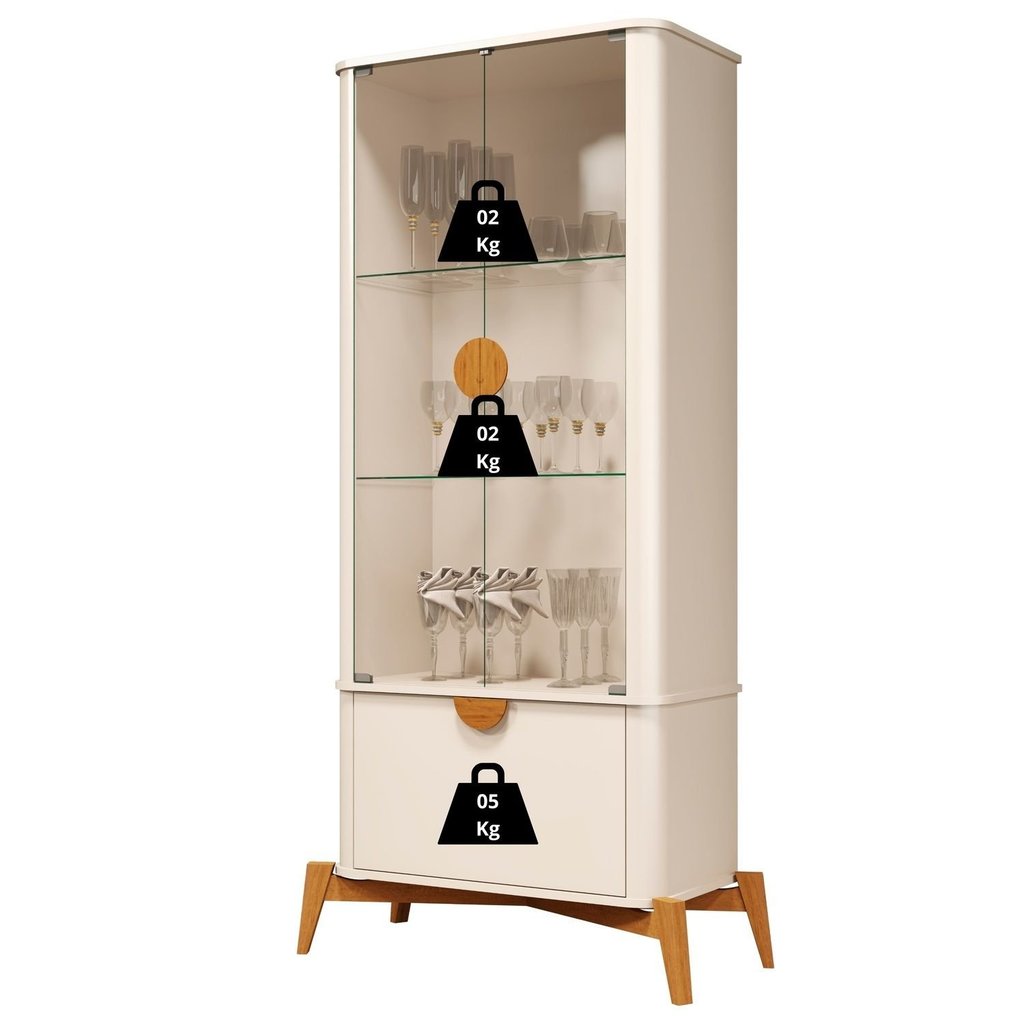 Cristaleira Curva com Puxador e Pés em Madeira Maciça Off White/Nature