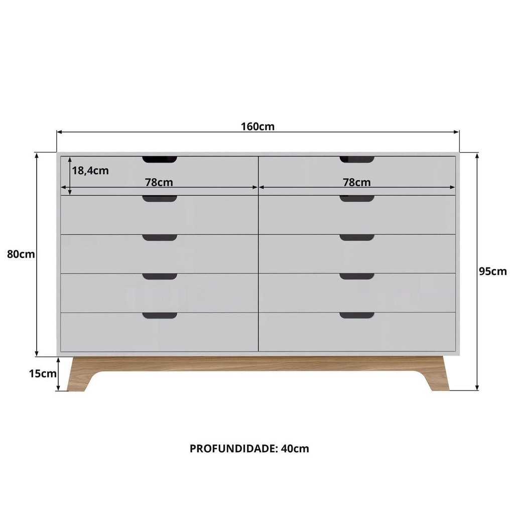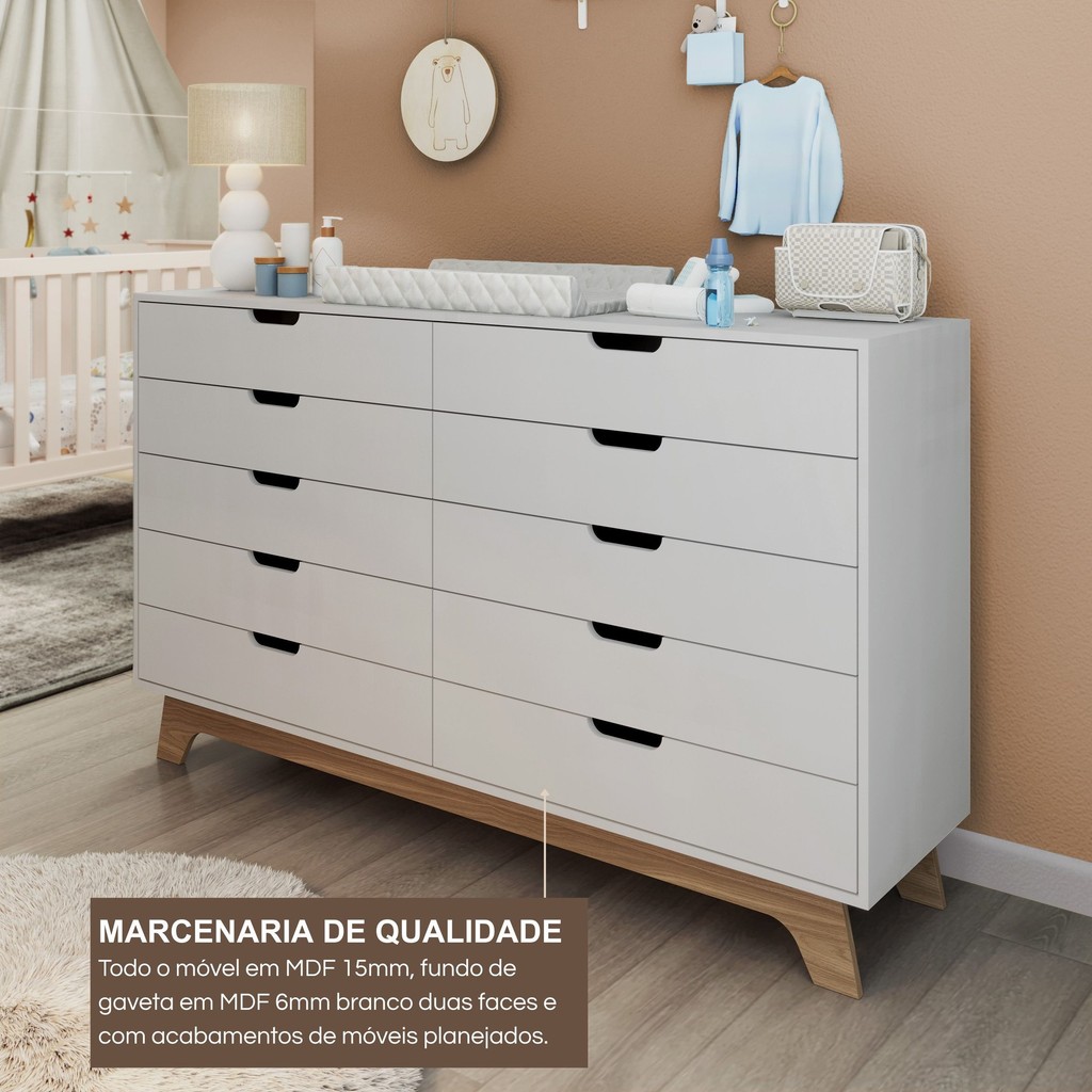 Cômoda para Quarto Infantil 10 Gavetas 100% Mdf Alice Branco/Louro Freijo