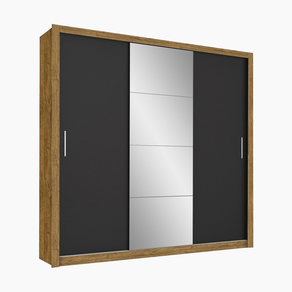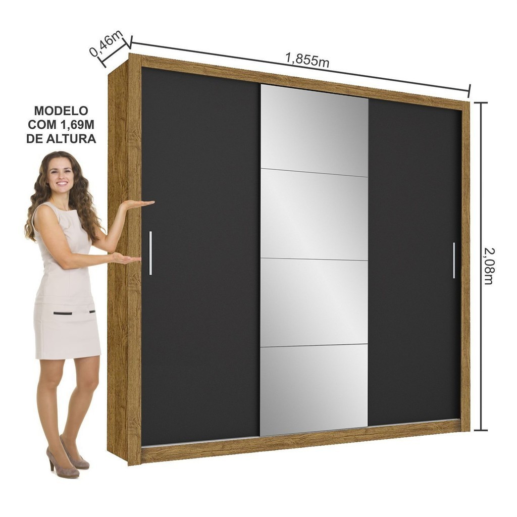 Guarda-roupa Casal 4 Espelhos 3 Portas de Correr 4 Gavetas Max Plus Espresso Móveis Cinamomo/Preto
