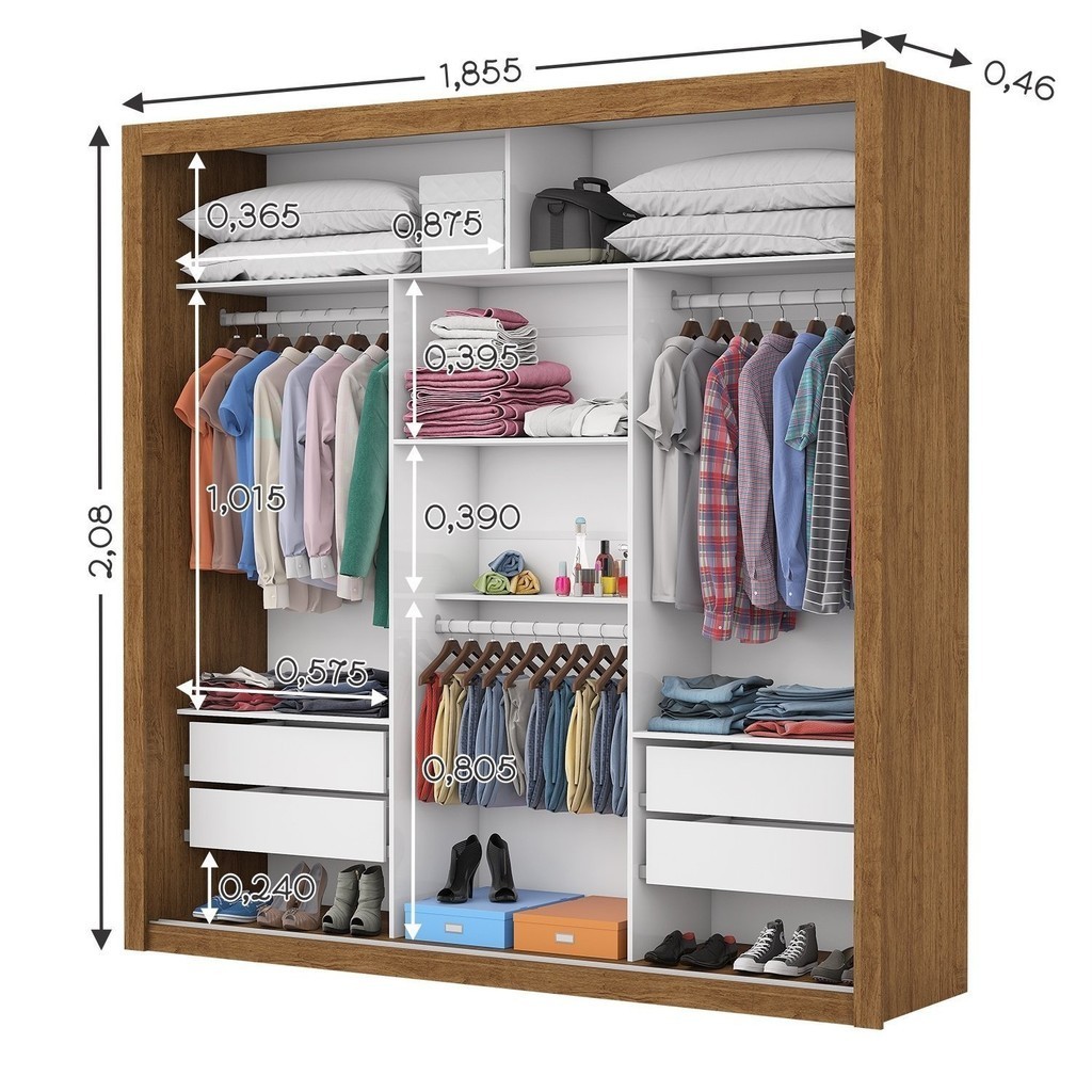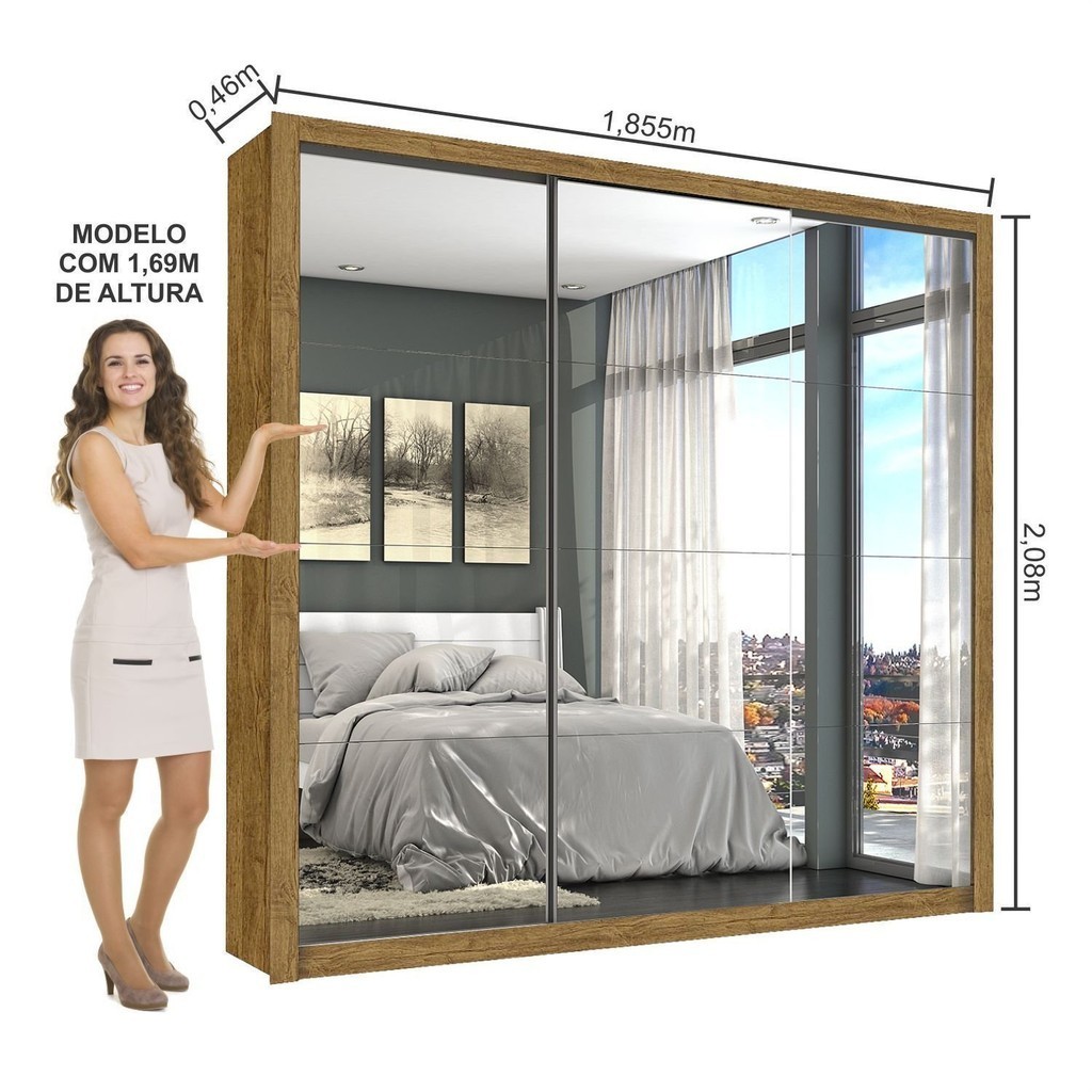 Guarda-roupa Casal 4 Espelhos 3 Portas de Correr 4 Gavetas Max Premium Espresso Móveis Cinamomo