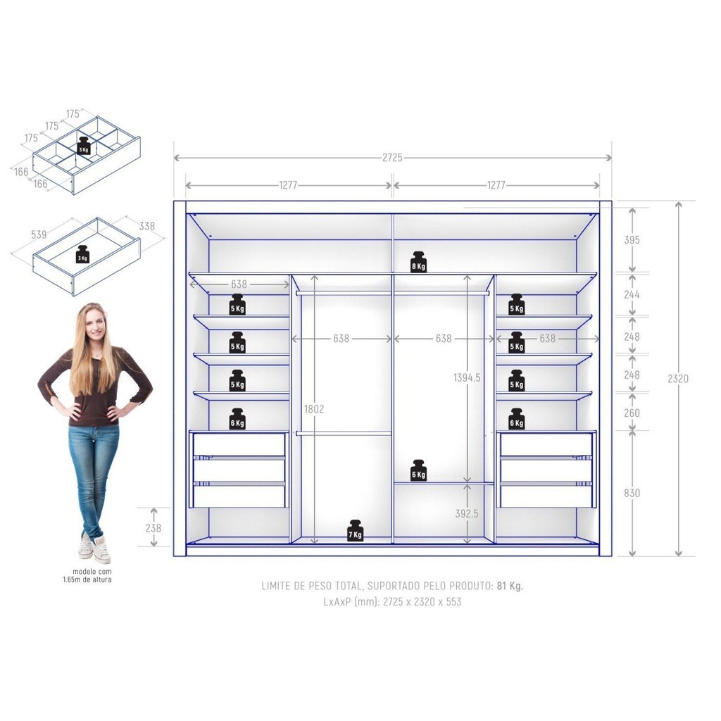 Guarda Roupa Casal Essencial 2 Portas de Correr 6 Gavetas Branco Absoluto