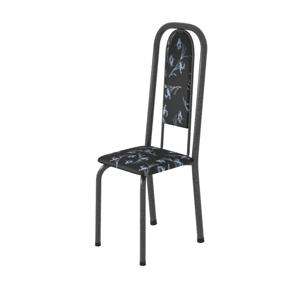 Conjunto de Mesa 180x75cm Tampo Granito com 8 Cadeiras Lavínea Martelado Prata/Ocre/Preto Floral