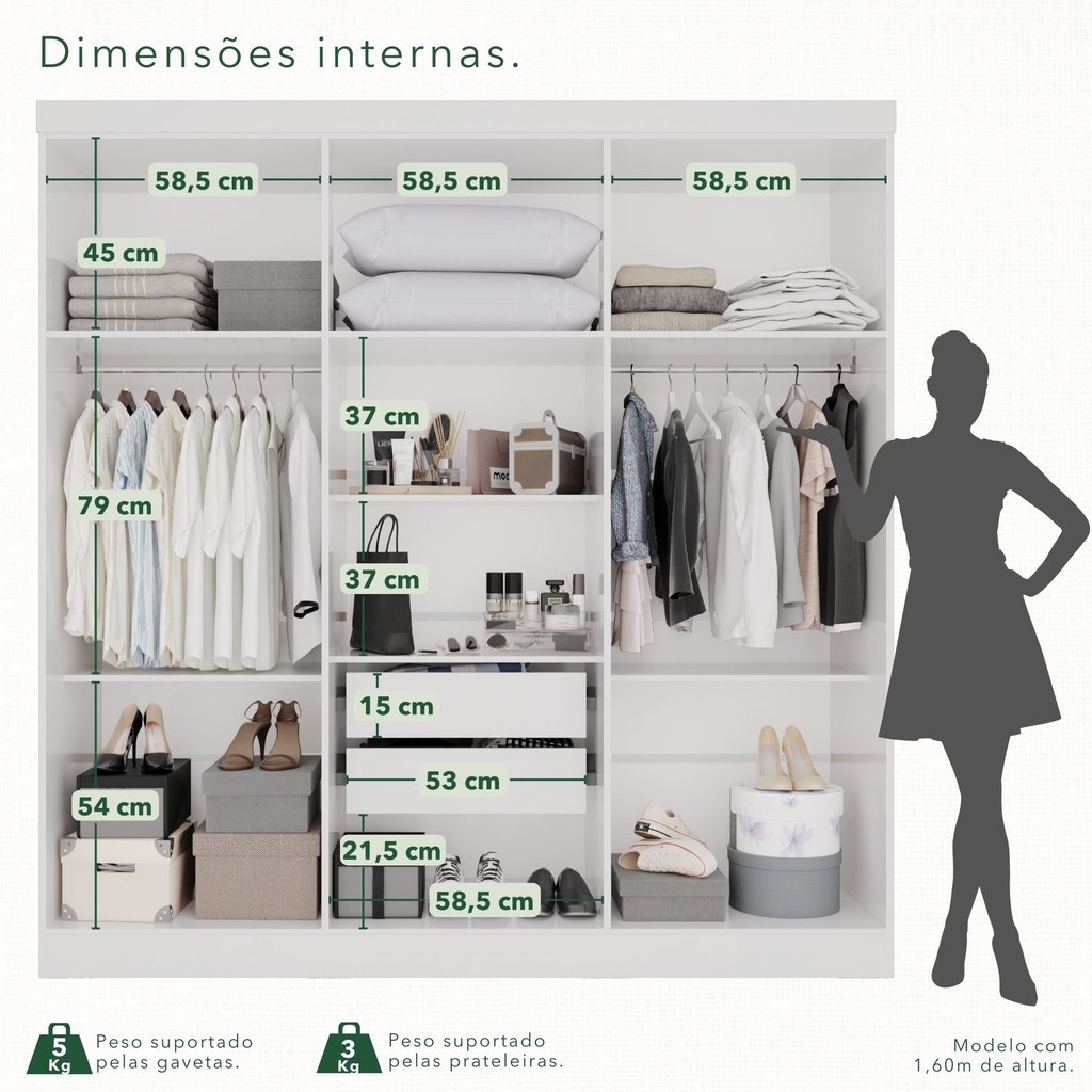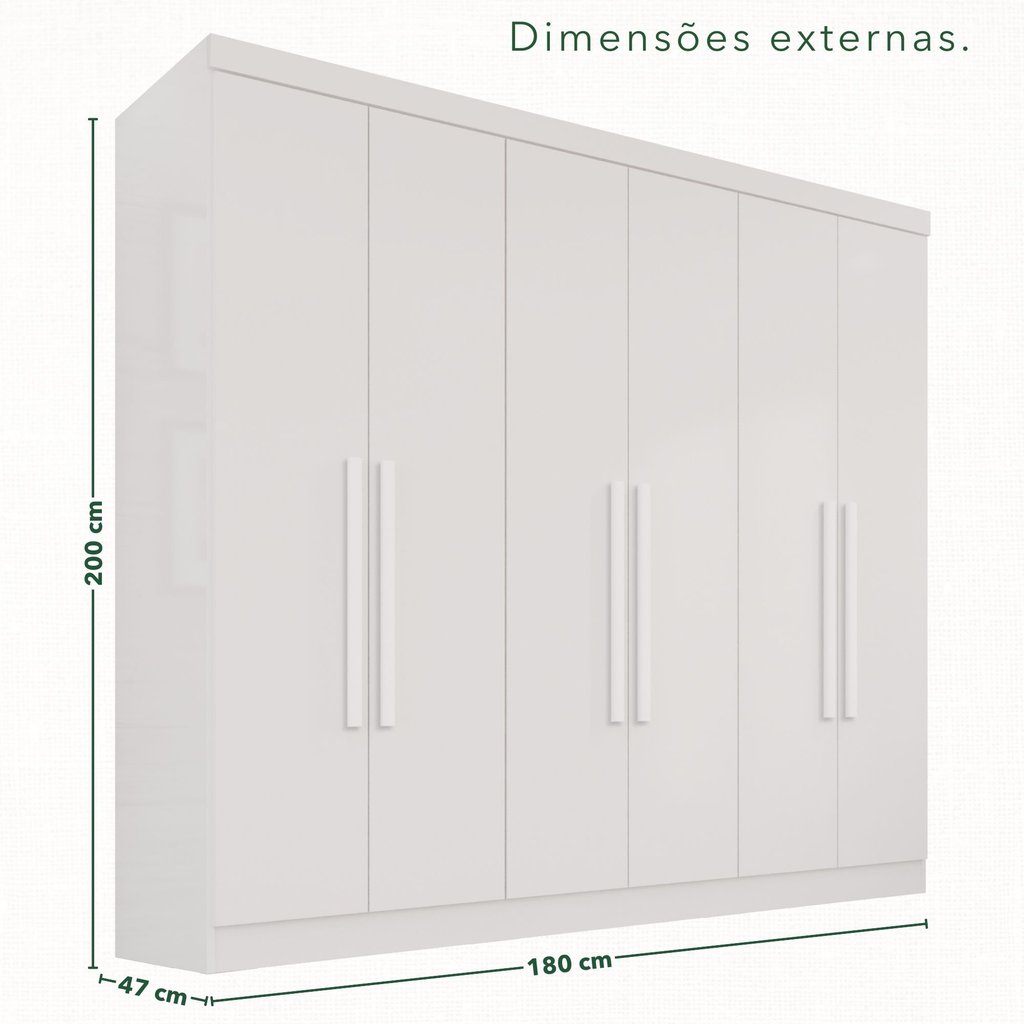 Guarda-Roupa Casal 6 Portas 2 Gavetas França Branco