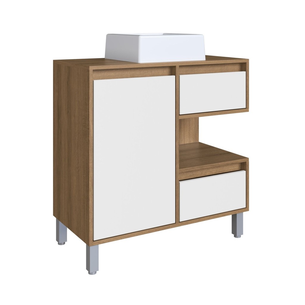 Gabinete para Banheiro Com Cuba Branca 80cm 2 Gavetas 1 Porta 1 Nicho Paula Mel/Arenas
