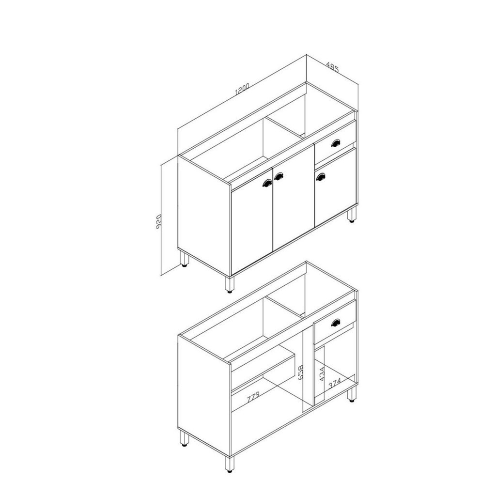 Balcão de Pia 120cm 3 Portas e 1 Gaveta Torino