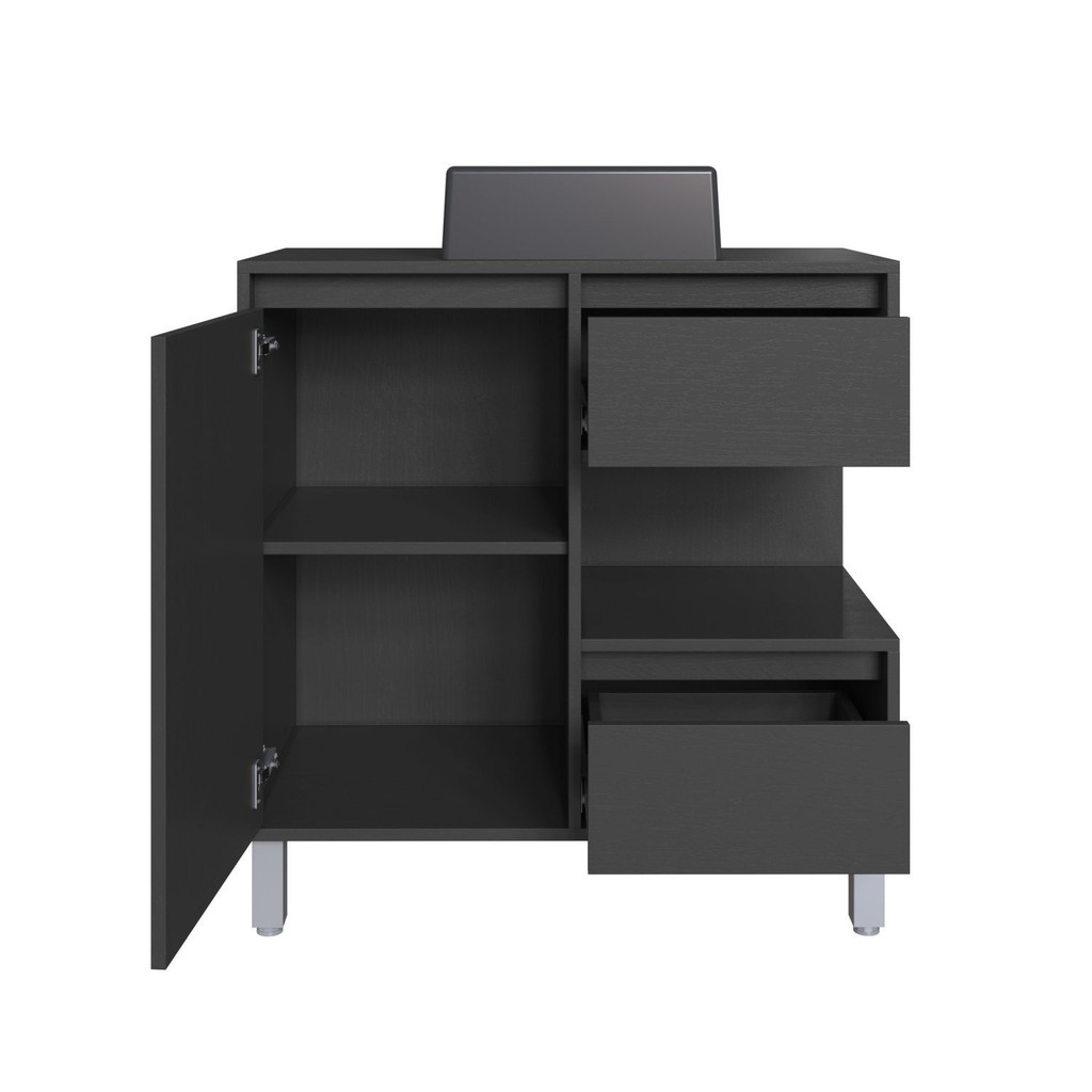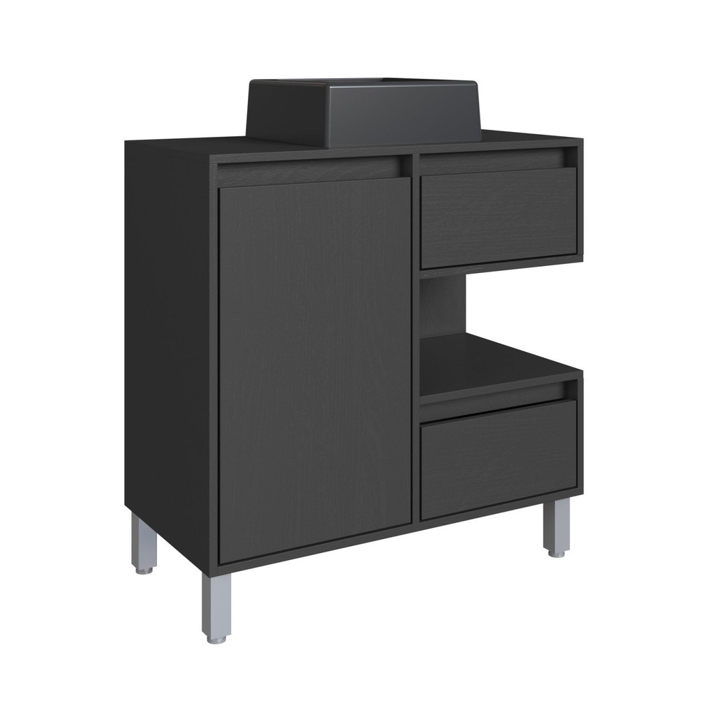 Gabinete para Banheiro Com Cuba Preta 80cm 2 Gavetas 1 Porta 1 Nicho Paula Grafite