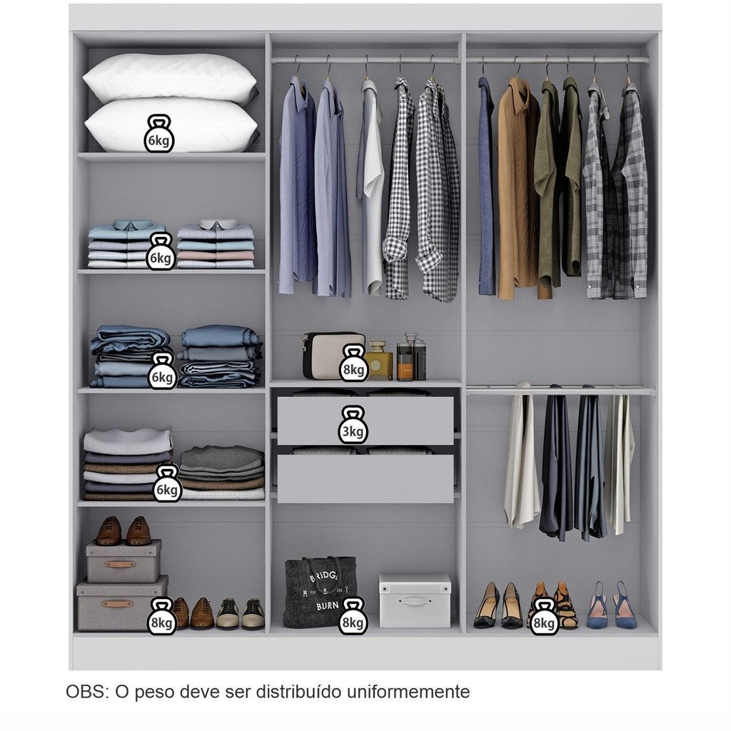 Guarda-roupa Casal 6 Portas 2 Gavetas Paris Branco