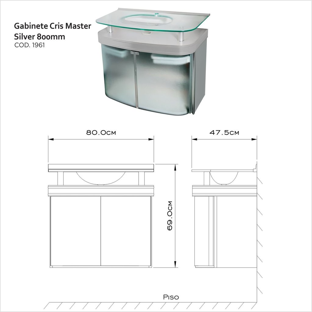 Gabinete para Banheiro com Cuba Cris Master 80cm x 47,5cm
