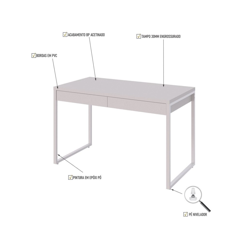 Escrivaninha Mesa Escritório 120Cm 2 Gavetas Kuadra Branco/Branco Chess