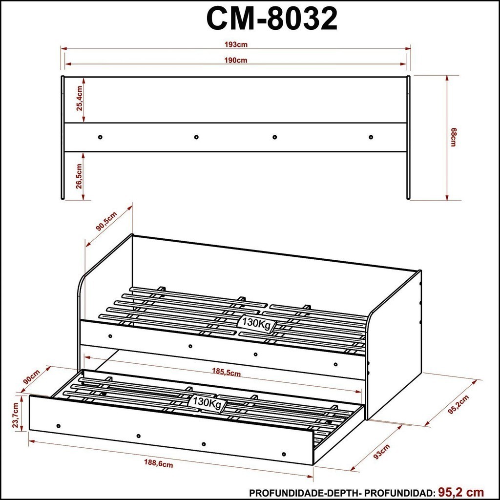 Bicama Solteiro com Auxiliar CM8032