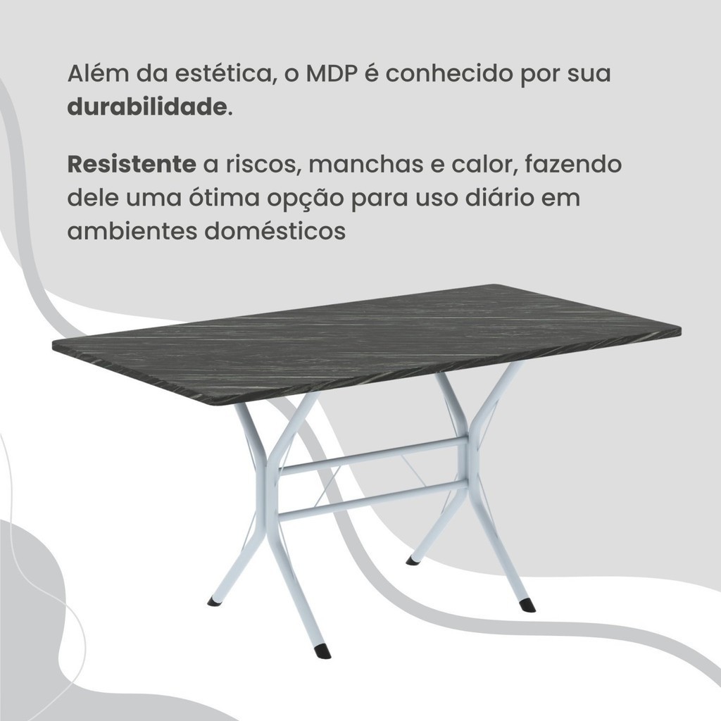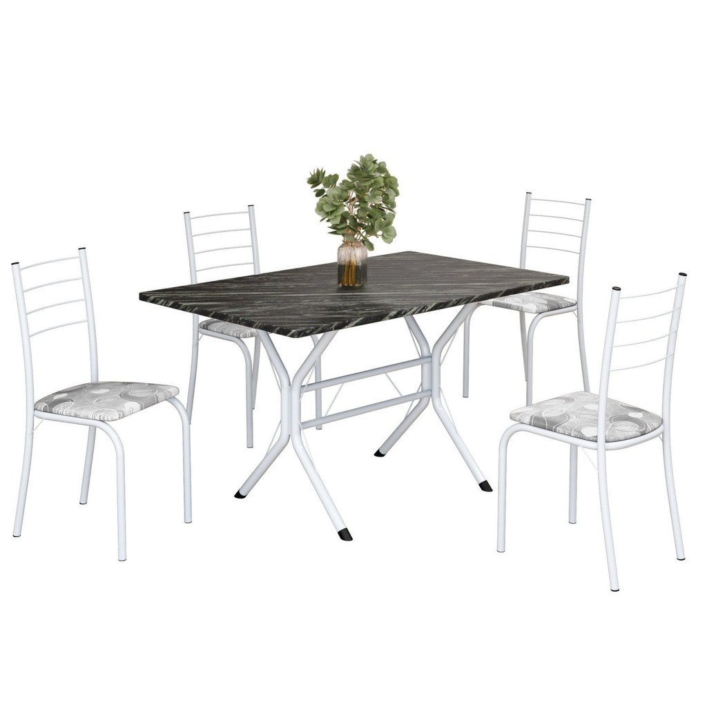 Conjunto Sala de Jantar Mesa Retangular 100x60cm Tampo Madeira Mdp Ardósia Indiana 4 Cadeiras Rio Paraopeba/Branco