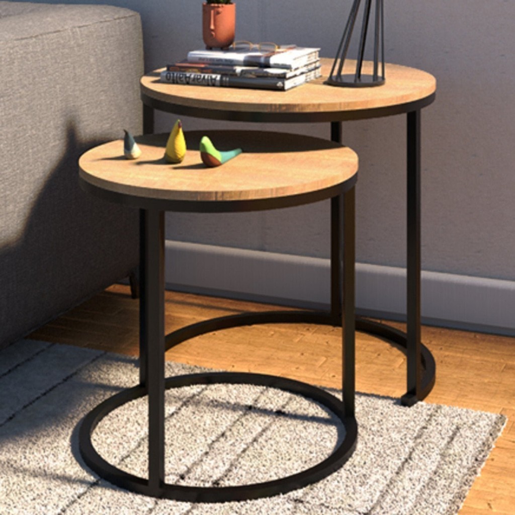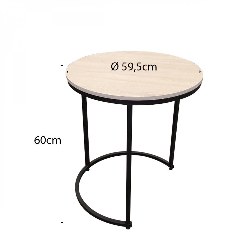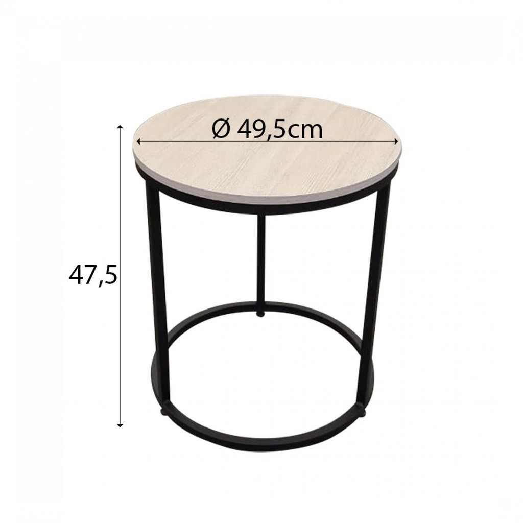 Kit 2 Mesas Laterais Redondas Industrial Encaixáveis Line Preto/Fresno