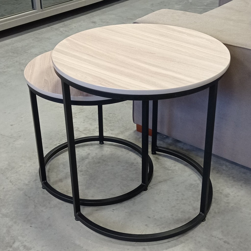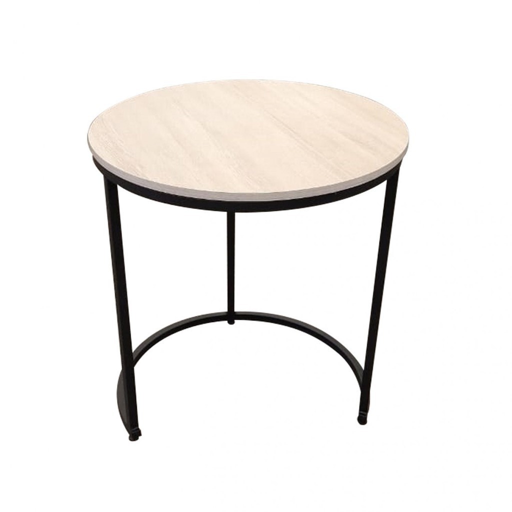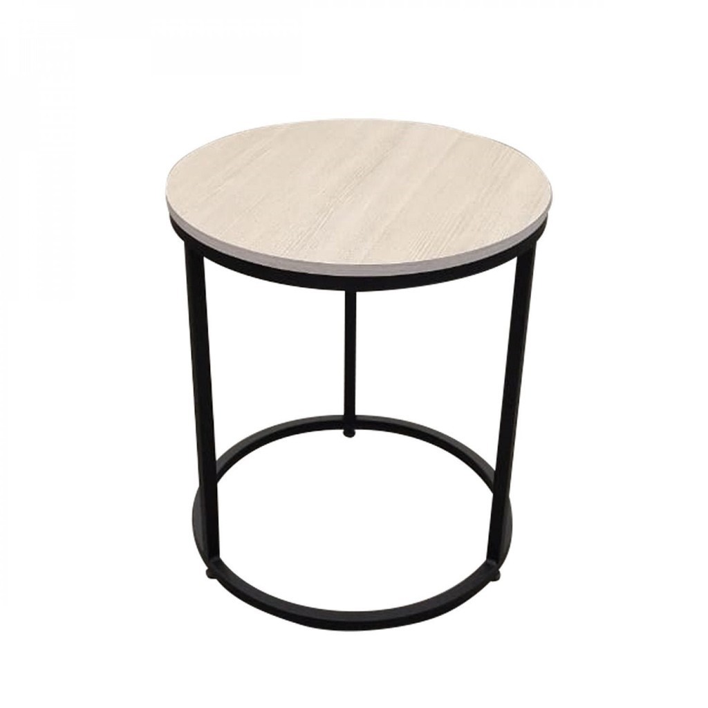 Kit 2 Mesas Laterais Redondas Industrial Encaixáveis Line Preto/Fresno