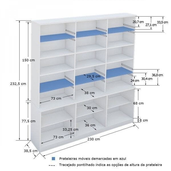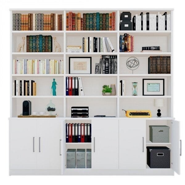 Estante de Livros 6 Portas 5 Prateleiras Moderno Branco