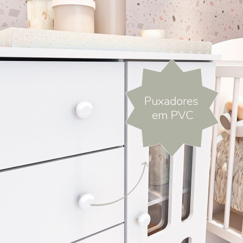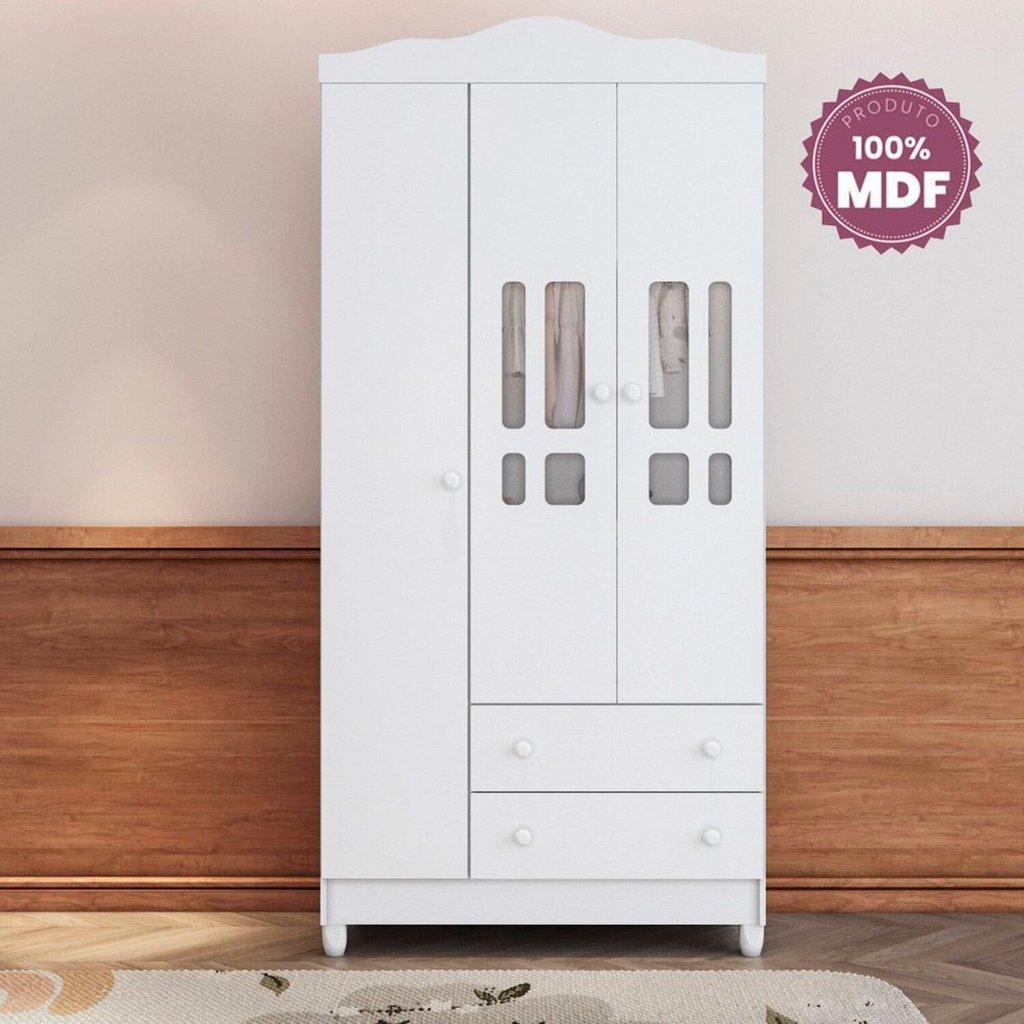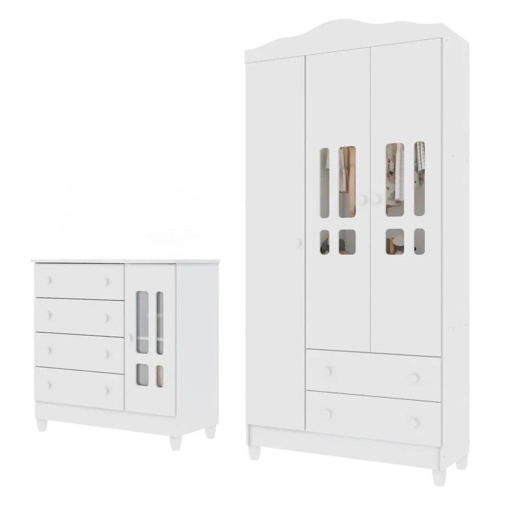 Quarto de Bebê Cômoda 1 Porta e Roupeiro 3 Portas Mdf Ariel