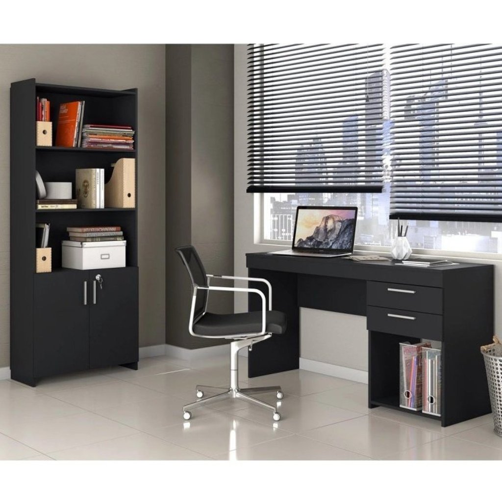 Kit 2 Peças 1 Escrivaninha 2 Gavetas 1 Armário 2 Portas 2 Prateleiras Espresso Móveis Preto Tx