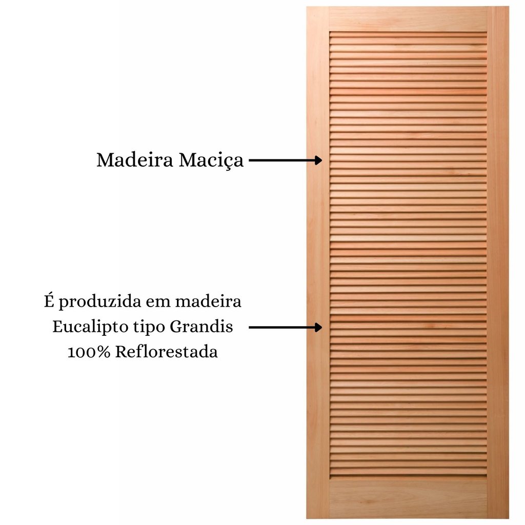 Folha de Porta Maciça em Eucalipto acabamento Natural 210x92cm PM09 Veneziana Cruzeiro Portas