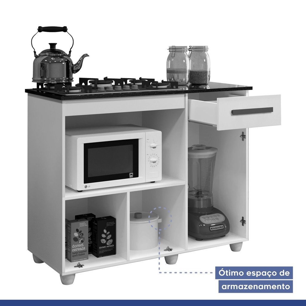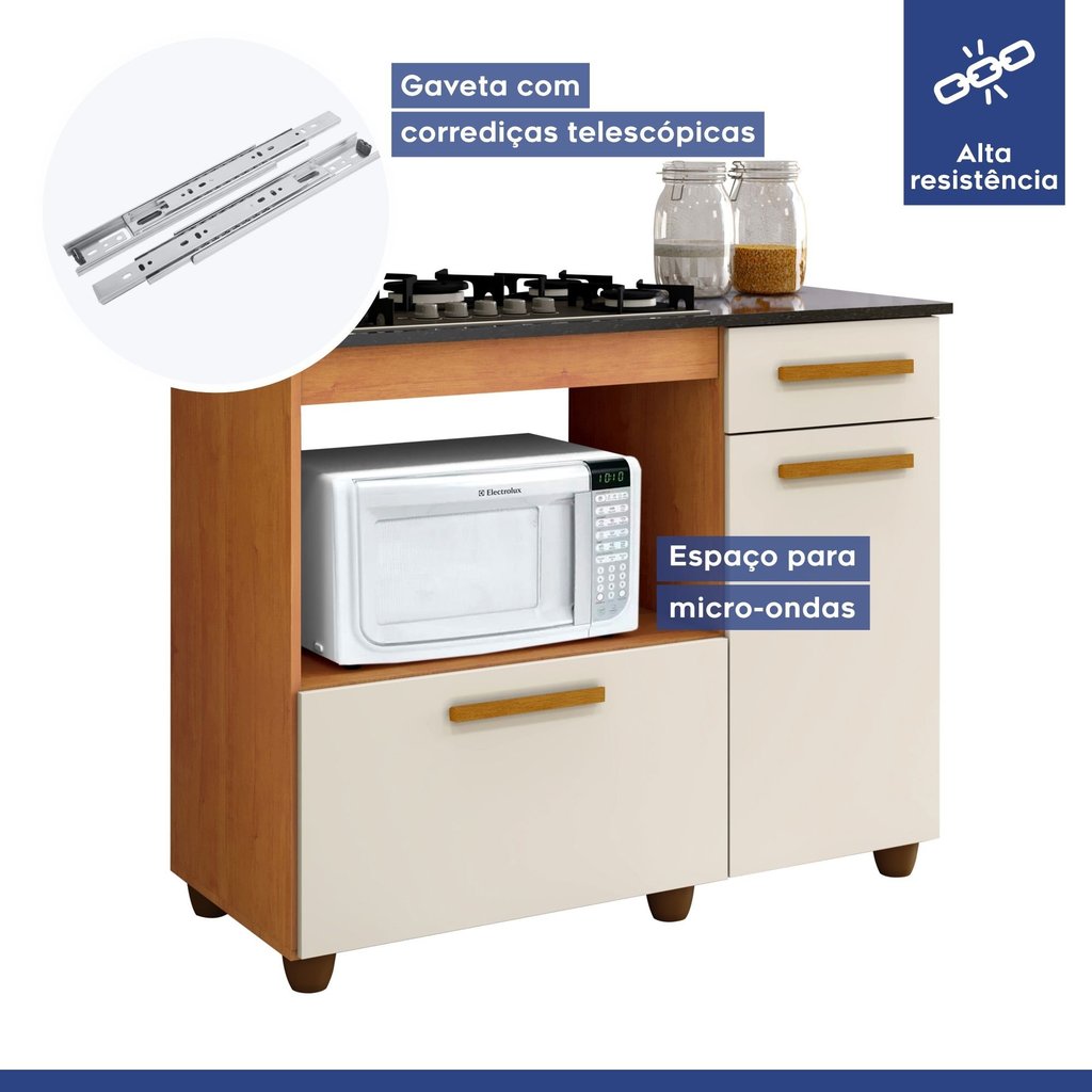 Balcão de Cozinha para Cooktop 2 Portas 1 Gaveta 1 Nicho para Forno Nature/Off White