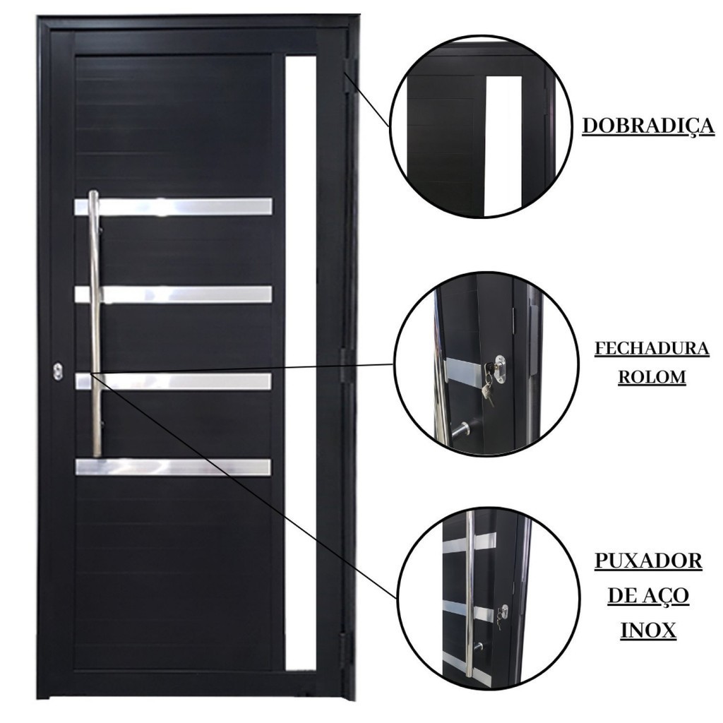 Porta Lambril de Alumínio 210 X 90cm com Puxador Friso e Visor Linha 30 Abertura Esquerda