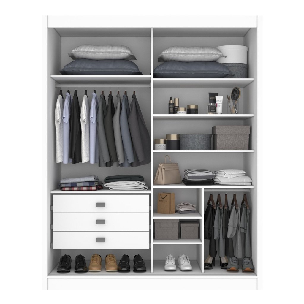 Guarda Roupa Casal 2 Portas 3 Gavetas com Espelho 100% Mdf Grécia Branco