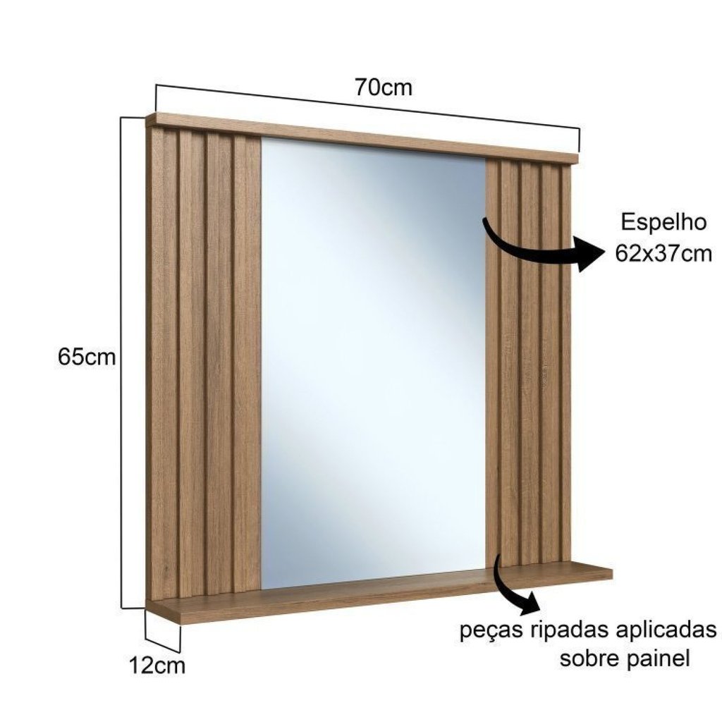 Conjunto para Banheiro Gabinete Suspenso 75cm com Cuba e Espelheira Ripada Luiza Mel/Branco