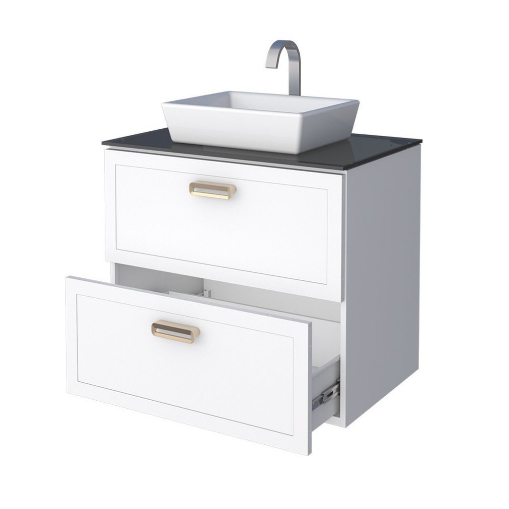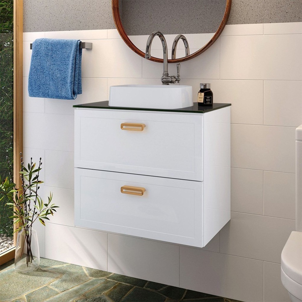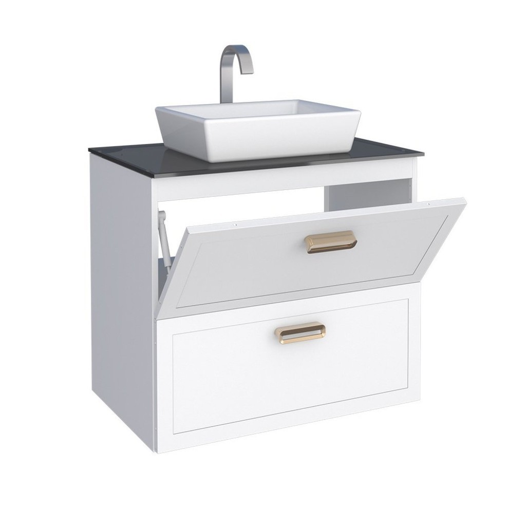 Gabinete Para Banheiro Em Aço Com Tampo Em Vidro Temperado Sem Cuba Odin Branco