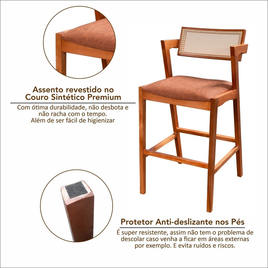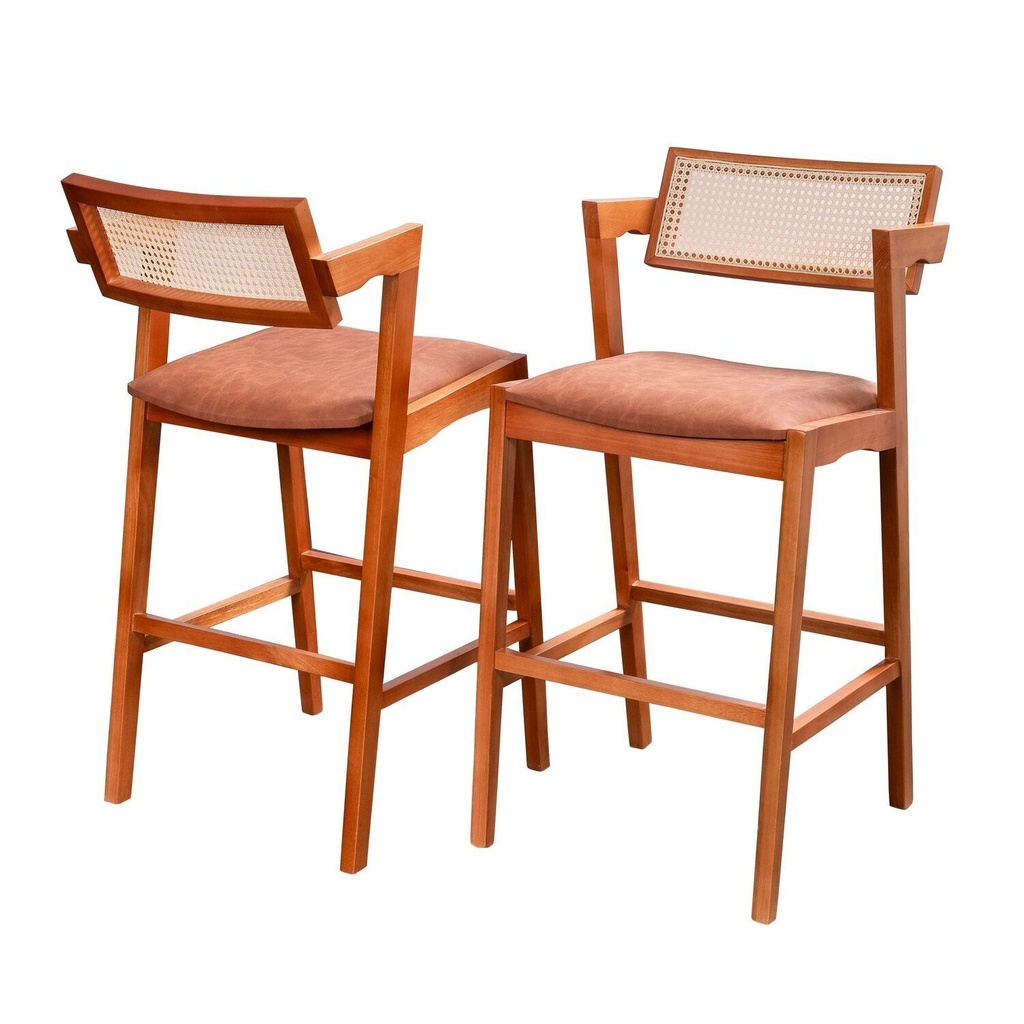 Kit 2 Banquetas Madeira Maciça, Estofada e Rattan de Fibra 100% Natural Nápoles Espresso Móveis