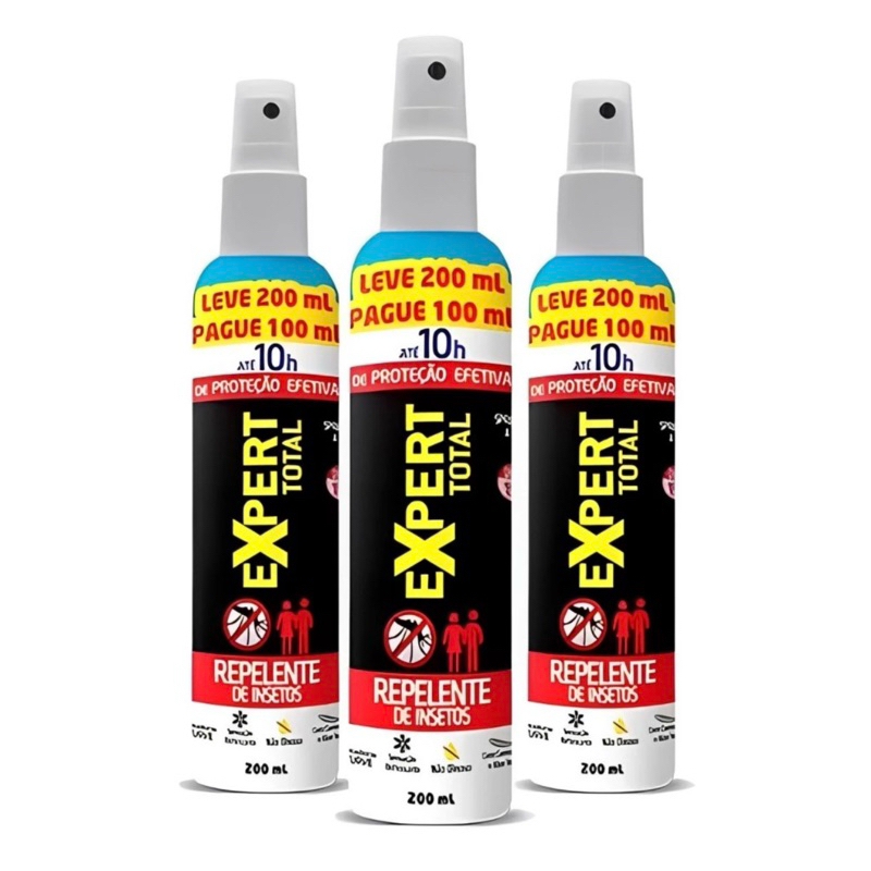 Kit 3 Repelentes Expert Total 10 De Insetos e Transmissores de Virus Proteção Avançada 200ml