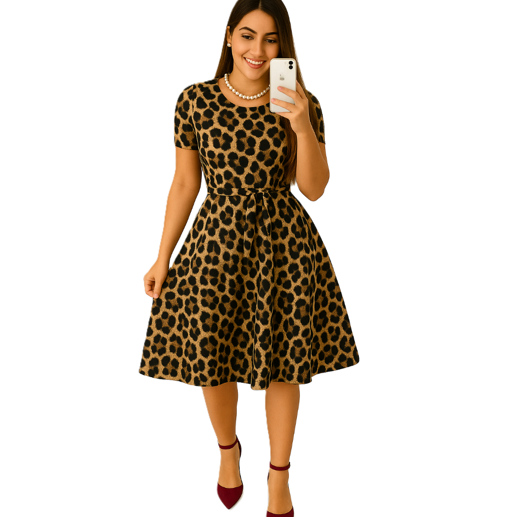 Vestido Oncinha Evangelico Crente Bababado Mid Moda Cristã Plus Size Malha Crepe Moda Clássica Feminina Premium Casual