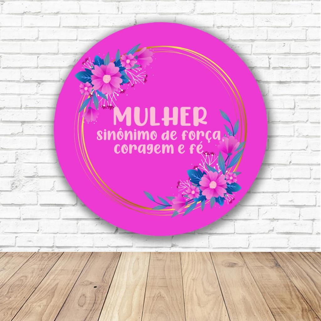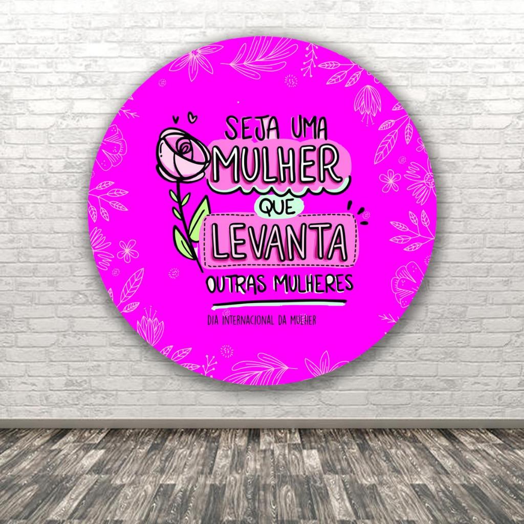 Painel Redondo Decorativo Tematico Dia da Mulher Empoderamento Evento Malha Sublimada